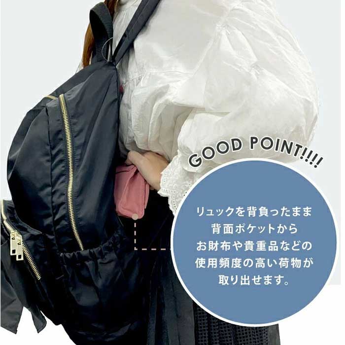 | 商品説明 | 【リボンが主役のリュック】軽やかに持てて毎日が快適!「ピンクトリック ラップリボンリュック」。【A4サイズも楽々入る】大容量で、通勤・通学からマザーズバッグまで幅広く活躍。【軽量ナイロン素材使用】軽量なのでお出かけはもちろん、旅行にも最適◎【撥水で雨の日も安心】突然の雨にも対応できる撥水素材で汚れもふき取りやすい。【Wファスナーデザイン】左右どちらからでも開閉可能なWファスナー。【8ポケットで整理上手】スマホや鍵がすぐ見つかる充実のポケット配置。背面にはファスナー付きポケットも。【肩ひも調整OK】調整可能なショルダーベルトで自分好みの長さに。【リボンで華やぐ背中】大きなリボンデザインが後ろ姿を華やかにしてくれる存在感♪ |