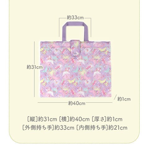 | サイズ | 【ディノワールド・ユニコーン・ドリームフラッペ】 [縦]約31cm/[横]約40cm/[厚さ]約1cm [外側持ち手]約33cm/[内側持ち手]約21cm 【にんぎょのおひめさま・とうのおひめさま】 [縦]約29cm/[横]約37cm/[厚さ]約1cm [持ち手]約31cm ※サイズは当店計測の実寸サイズです。実際の商品ならびにメーカー表記サイズとは多少の誤差が生じる場合がございます。あらかじめご了承ください。 |
