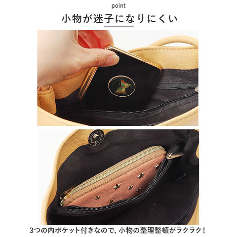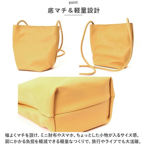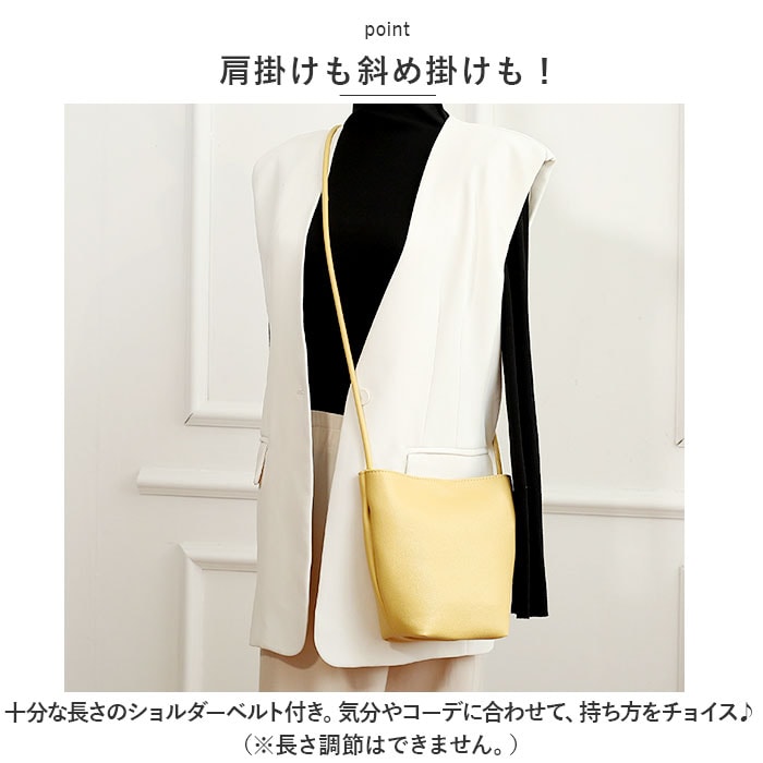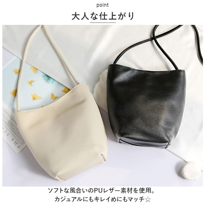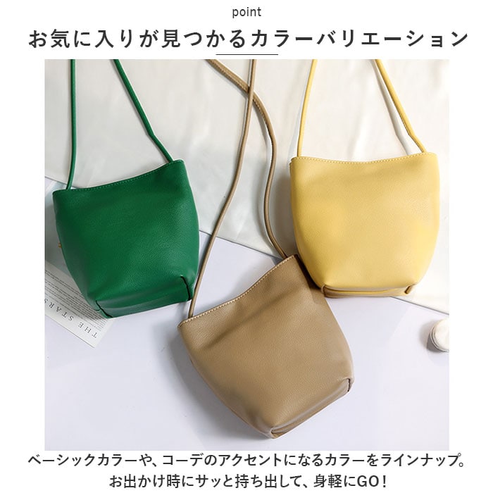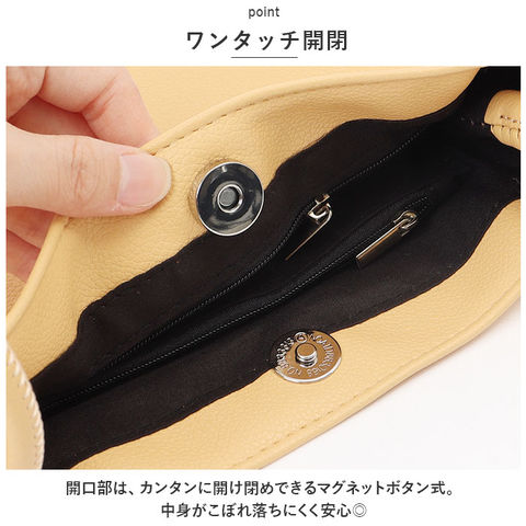 | 商品説明 | ミニマル派に嬉しい!シンプルなミニショルダーバッグが新登場。【必要最低限の小物がまとまる◎】お出かけ時にサッと持ち出して、身軽にGO!【大人な仕上がり】ソフトな風合いのPUレザー素材を使用。カジュアルにもキレイめにもマッチ☆【ワンタッチ開閉】開口部は、カンタンに開け閉めできるマグネットボタン式。中身がこぼれ落ちにくく安心◎【底マチ&軽量設計】程よくマチを設け、ミニ財布やスマホ、ちょっとした小物が入るサイズ感。肩にかかる負担を軽減できる軽量なつくりで、旅行やライブでも大活躍。【小物が迷子になりにくい】3つの内ポケット付きなので、小物の整理整頓がラクラク!【肩掛けも斜め掛けも!】十分な長さのショルダーベルト付き。気分やコーデに合わせて、持ち方をチョイス♪(※長さ調節はできません。)【お気に入りが見つかるカラーバリエーション】ベーシックカラーや、コーデのアクセントになるカラーをラインナップ。【ポケット仕様】内側:ファスナーポケット×2、オープンポケット×1 |