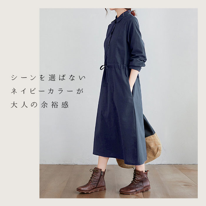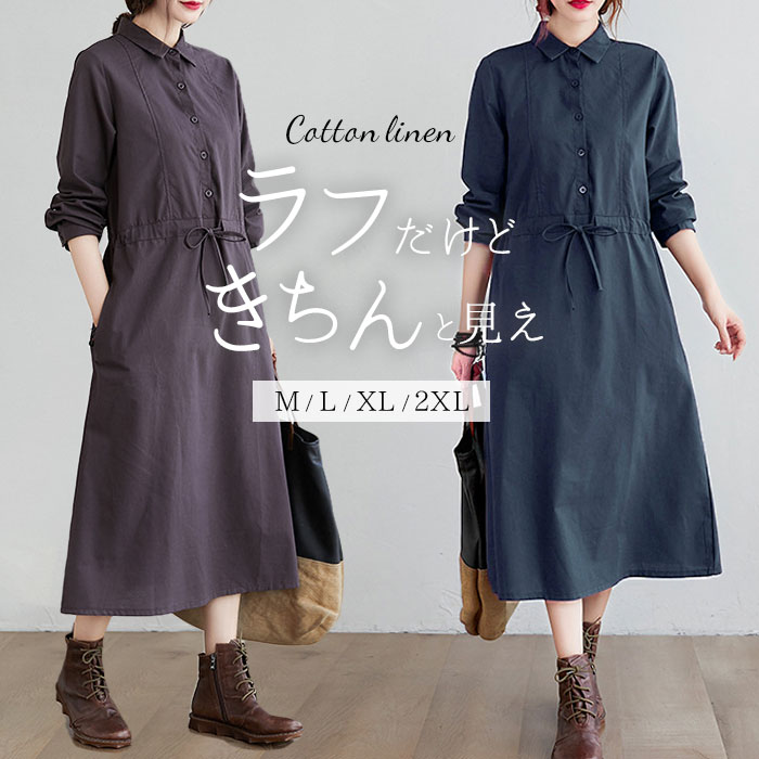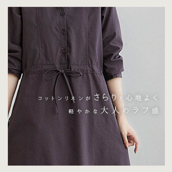 | 商品説明 | ・1枚でコーデがキマる♪シンプルなシャツワンピースが新登場。サラッとしたコットンリネン素材を使用しており、着心地軽やか◎ふくらはぎの半分が隠れるくらいのミモレ丈。(※着用する方の身長により、丈感が異なります。)襟を付けることできちんと感をプラス。ウエスト紐を程よく絞って結ぶ切替デザイン。気になるボディラインもふんわりカバーできるのが、嬉しいポイント。左右に便利なポケット付き。ショート丈の編み上げブーツなどと合わせて、おしゃれにコーディネート♪ |