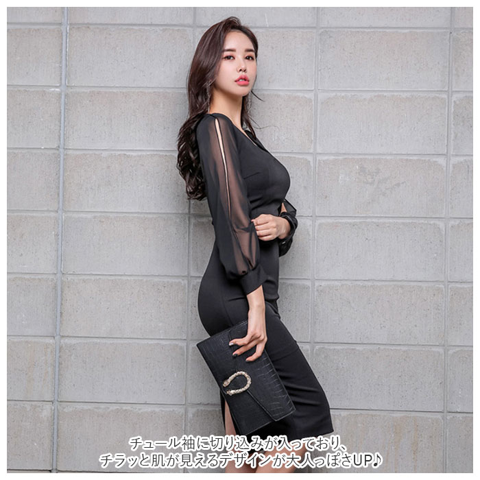 | 商品説明 | 腕出しとチュール袖を融合させたユニークなワンピースドレスが登場。チュール袖に切り込みが入っており、チラッと肌が見えるデザインが大人っぽさUP♪胸元は大きく開いたデザインでネックレスやペンダントが映える作りに。タイトめな作りで女性らしいシルエットを演出♪着脱しやすいファスナーを背中に配置。普段使いやパーティーシーン、ナイトドレスなど幅広く活躍するアイテム☆ |