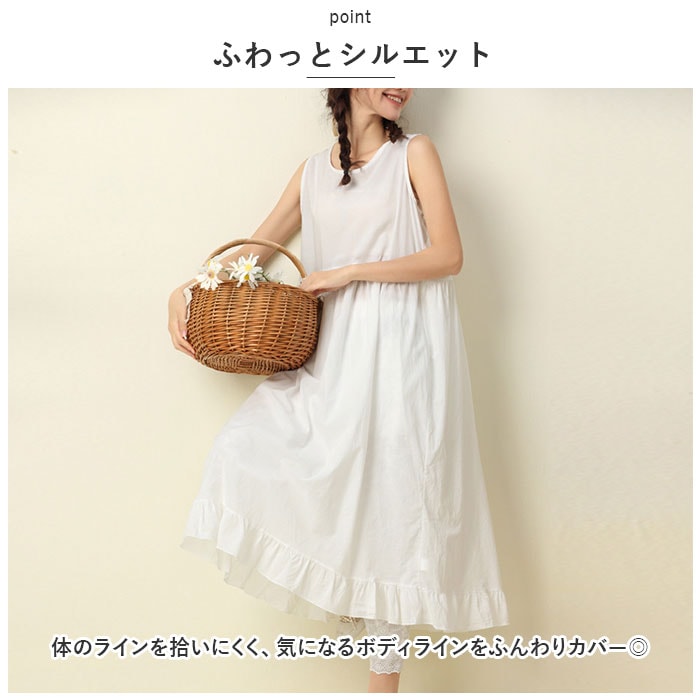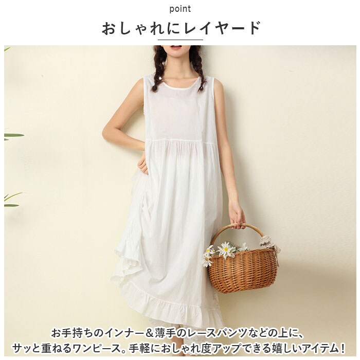 | 商品説明 | レイヤードスタイルにおすすめ♪シンプルなワンピースが新登場。【おしゃれにレイヤード】お手持ちのインナー&薄手のレースパンツなどの上に、サッと重ねるワンピース。手軽におしゃれ度アップできる嬉しいアイテム!【着心地軽やか】薄手で透け感のある素材。涼しげな印象なので、春夏にぴったり。【ふわっとシルエット】体のラインを拾いにくく、気になるボディラインをふんわりカバー◎【アクセントをプラス】裾部分のほんのりフリルデザインがポイント。【着回しやすいカラーバリエーション】どんなアイテムとも相性の良い、ベーシックなカラーをラインナップ! |