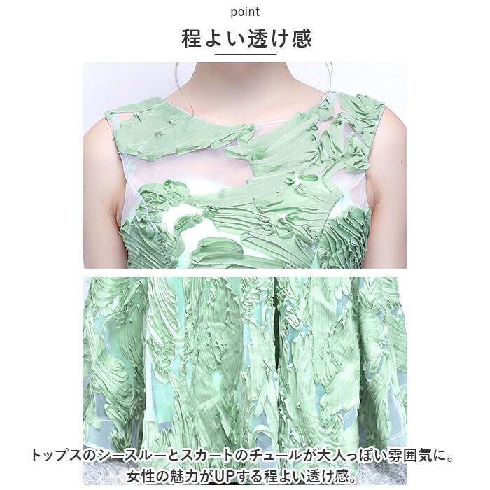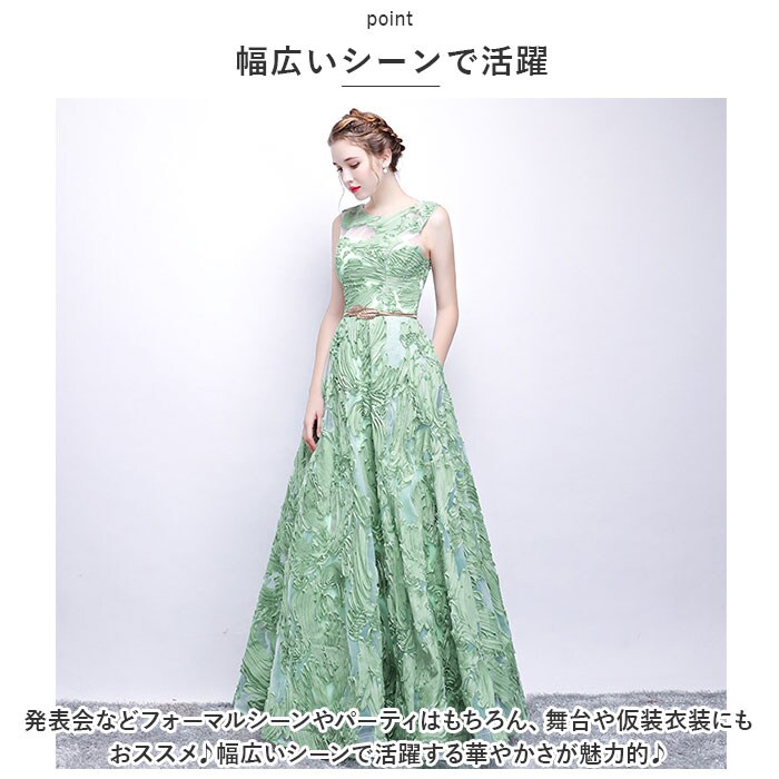 | 商品説明 | フォーマルやパーティシーンに大活躍☆ロングドレスが発売♪【刺?デザイン】ふんわりとしたホワイトカラーの中にグリーンの刺繍が映えるデザイン♪上品で華やかなアイテム◎【程よい透け感】トップスのシースルーとスカートのチュールが大人っぽい雰囲気に。女性の魅力がUPする程よい透け感。【細見え】ゴールドカラーのベルトを使用することにより、ラインにアクセントが生まれて細見え効果も。【ファスナー付き】・1人でも着脱がしやすい、ファスナーを背面に装備。【幅広いシーンで活躍】発表会などフォーマルシーンやパーティはもちろん、舞台や仮装衣装にもおススメ♪幅広いシーンで活躍する華やかさが魅力的♪ |