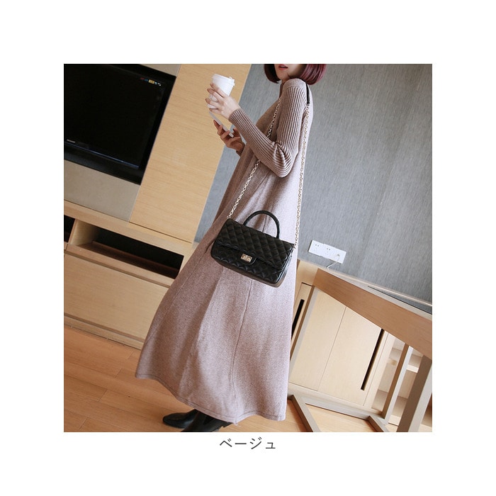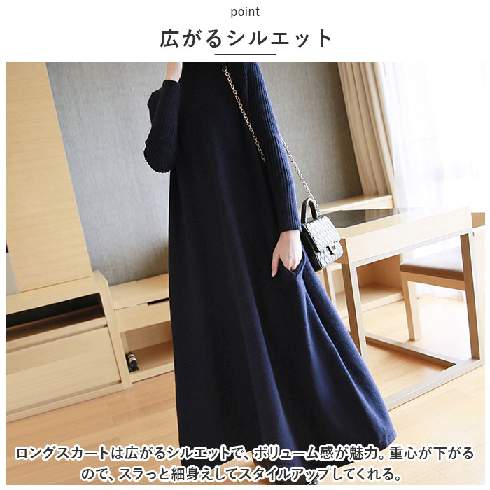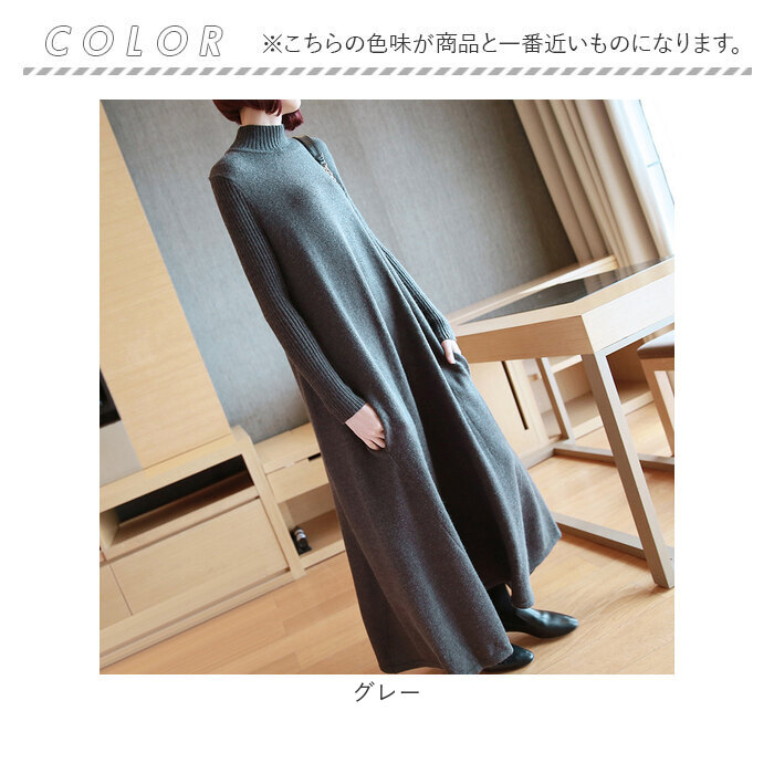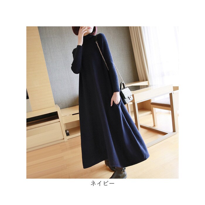 | 商品説明 | あったかニットが嬉しい♪シンプルな、ロングワンピースが登場。【タートルネック】首元までしっかりあったかい♪タートルネック仕様。寒い季節でもマフラーいらずで、小顔効果もある嬉しいデザイン。【広がるシルエット】ロングスカートは広がるシルエットで、ボリューム感が魅力。重心が下がるので、スラっと細身えしてスタイルアップしてくれる。【リブデザインをON】単調になりがちなワンピスタイルに、リブデザインでメリハリを。肩から手首に向けてスッと伸びるリブが大人っぽい♪【着心地抜群】ふんわり柔らかい生地なので、気持ちのよい着心地。締め付け感もなく、1日着てもストレスフリー。お家でのリラックスタイムにも◎【ポケットつき】両サイドには小物を入れられるポケットを搭載。リップなど、ちょっとした物を収納できるので便利! |