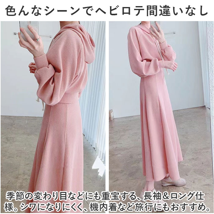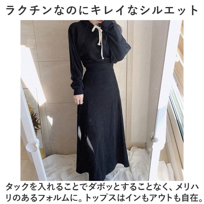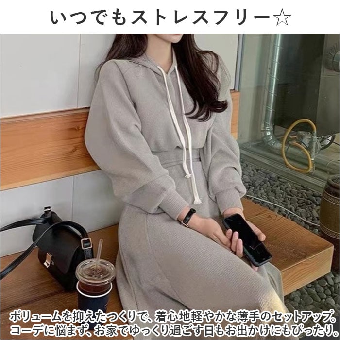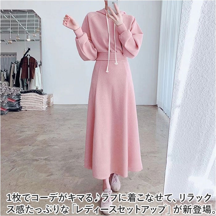 | 商品説明 | ・1枚でコーデがキマる♪ラフに着こなせて、リラックス感たっぷりな「レディースセットアップ」が新登場。【いつでもストレスフリー☆】ボリュームを抑えたつくりで、着心地軽やかな薄手のセットアップ。コーデに悩まず、お家でゆっくり過ごす日もお出かけにもぴったり。【ラクチンなのにキレイなシルエット】タックを入れることでダボッとすることなく、メリハリのあるフォルムに。トップスはインもアウトも自在。【サッと着られて締め付けなし◎】頭から被るだけのプルオーバーと、ウエストゴム仕様のAラインスカート。着替えがスムーズで動きも妨げない!【トレンドに左右されないシンプルさ】どなたでも着こなしやすい無地デザイン。フードやアイボリーカラーの首紐がアクセント。【色んなシーンでヘビロテ間違いなし】季節の変わり目などにも重宝する、長袖&ロング仕様。シワになりにくく、機内着など旅行にもおすすめ。 |
