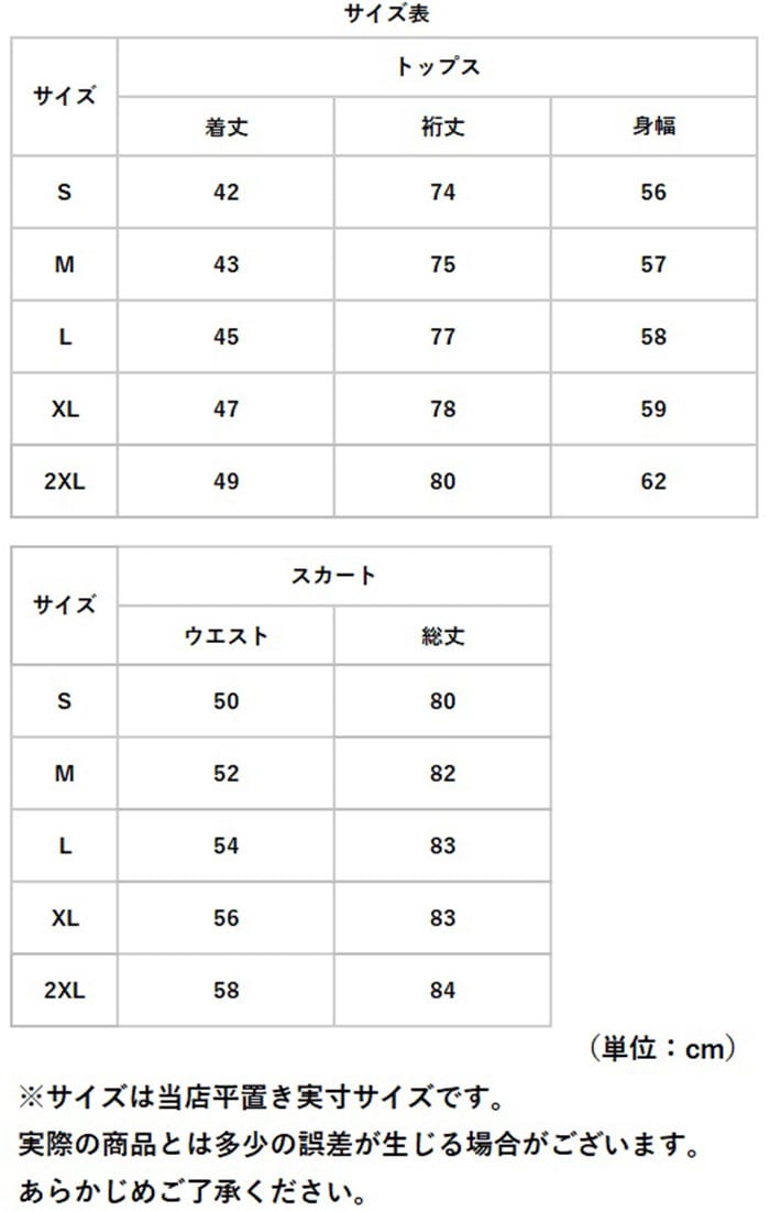 | サイズ | [レディース] ・Sサイズ ・Mサイズ ・Lサイズ ・XLサイズ ・2XLサイズ ※サイズについて詳細は、商品画像の中にあるサイズ表をご覧くださいませ。 |