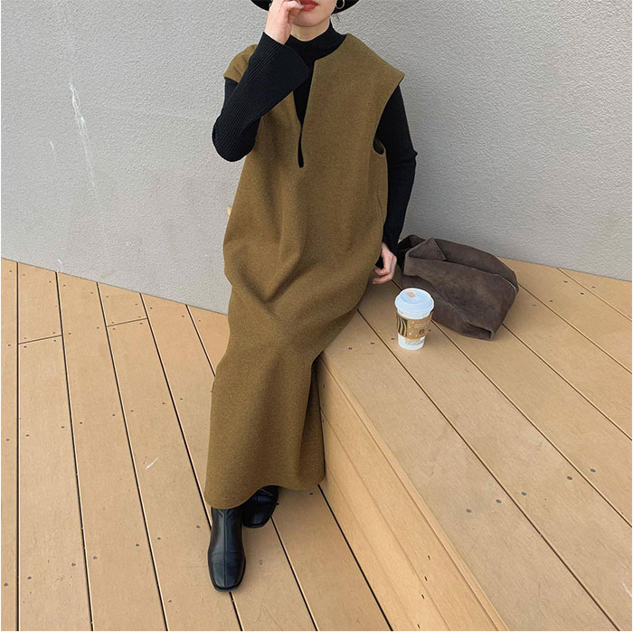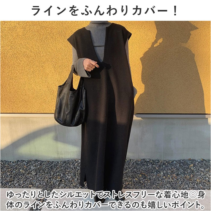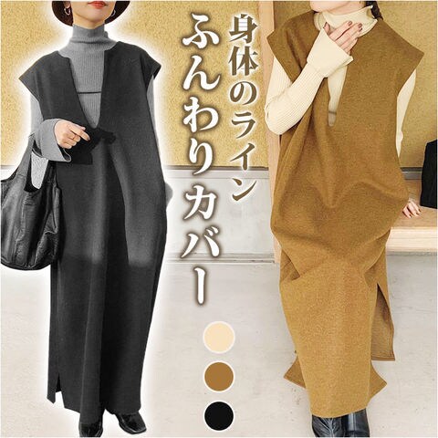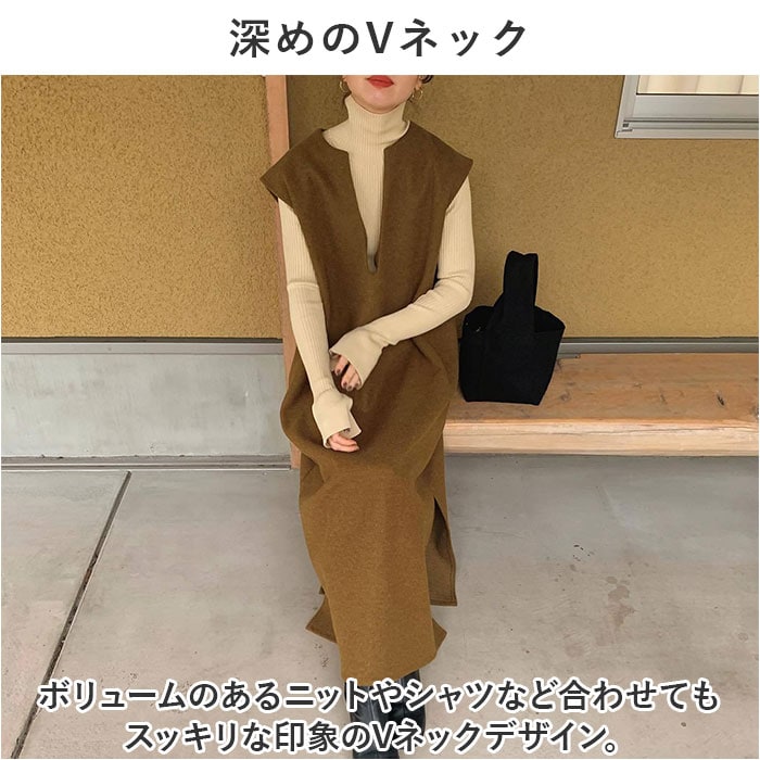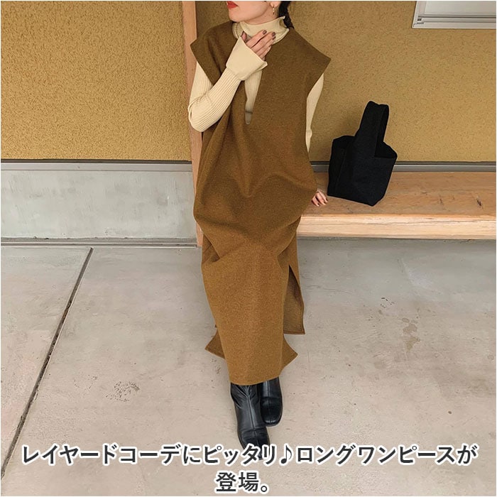 | 商品説明 | レイヤードコーデにピッタリ♪ロングワンピースが登場。【深めのVネック】ボリュームのあるニットやシャツなど合わせてもスッキリな印象のVネックデザイン。【ラインをふんわりカバー!】ゆったりとしたシルエットでストレスフリーな着心地◎身体のラインをふんわりカバーできるのも嬉しいポイント。【サイドスリット入り】両サイドにスリットが入っているので、足さばきラクラク。【サイドポケット付き】スマホやハンカチが入るポケットを両サイドに配置。【シンプルデザインで幅広く活躍】シンプルなデザインと落ち着きのあるカラーは、お洋服に合わせやすくどんなスタイルにも幅広くマッチ。 |