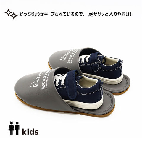 靴のまま履ける抗菌スリッパ【キッズグレー】