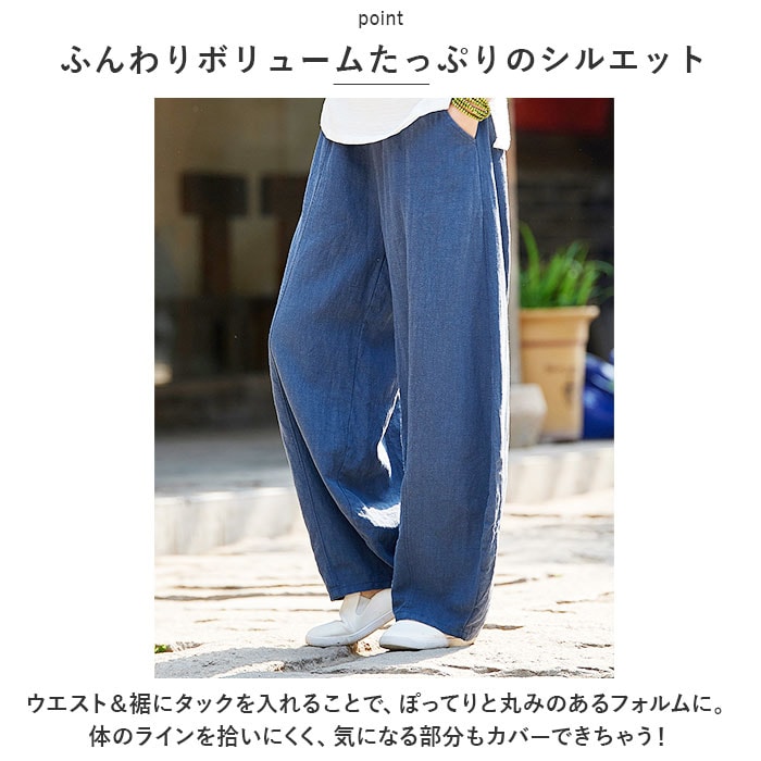 | 商品説明 | ゆったり快適♪大胆なボリューム感が可愛い、サーカスパンツが新登場。【ふんわりボリュームたっぷりのシルエット】ウエスト&裾にタックを入れることで、ぽってりと丸みのあるフォルムに。体のラインを拾いにくく、気になる部分もカバーできちゃう!【ストレスフリー】締め付け感のないウエストゴム仕様で、動き回っても座りっぱなしでもラクチン!股上が深く、安定した履き心地をプラス。【手触り柔らか】汗をかいてもムレにくい綿麻混紡素材。程よく厚みのある生地感ながらサラッとしており、春夏コーデにぴったりのアイテム☆【着回し力バツグン】カットソーやパーカーと合わせてカジュアルにはもちろん、上品なブラウスとのミックススタイルも♪幅広いコーデに対応できる大活躍の1着!【アレンジもOK】裾をくるっと折り返してもおしゃれ♪お好みに合わせてアレンジを楽しめるのも、嬉しいポイント。【便利なポケット付き】左右に配置したポケットには、スマホや薄手のハンカチなどをIN。 |