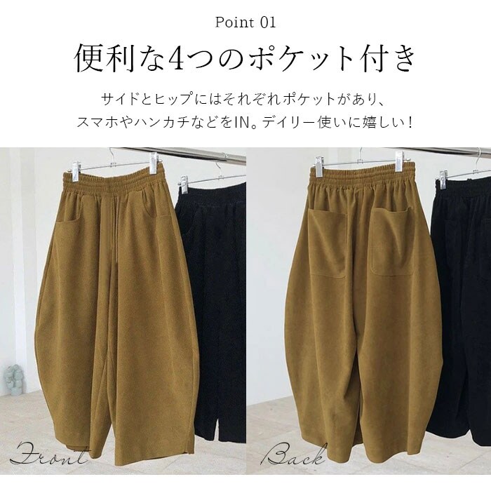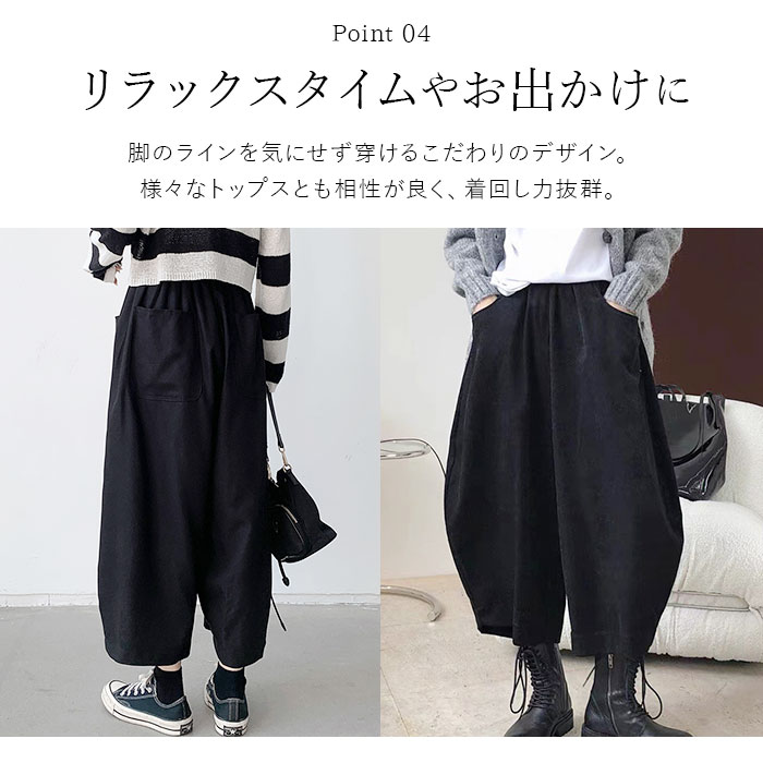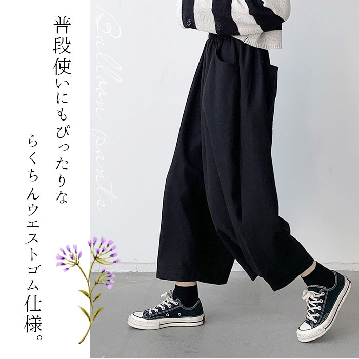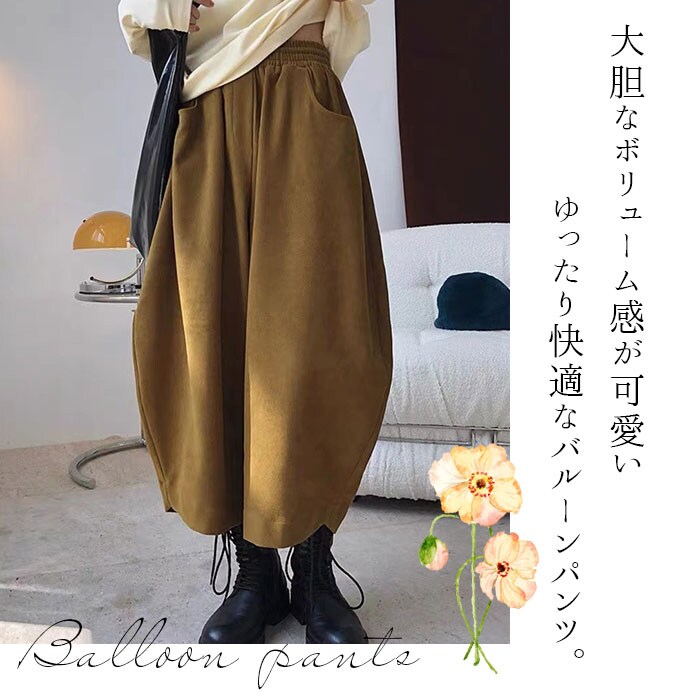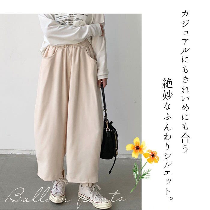| 商品説明 | ゆったり快適♪大胆なボリューム感が可愛い、バルーンパンツが新登場。【ボリュームたっぷりのシルエット】ワイドで脚の動きを邪魔しない楽ちんシルエット。様々なトップスとも相性が良く、コーディネートの幅が広がる◎【脚のラインを気にせず穿ける】脚のラインを気にせず穿けるこだわりのデザイン。下にタイツを穿いても体のラインを拾いにくく、気になる部分もカバーできちゃう!【ストレスフリーな履き心地】締め付け感のないウエストゴム仕様で、動き回っても座りっぱなしでもラクチン!股上が深く、安定した履き心地をプラス。【便利な4つのポケット付き】前後左右に配置されたポケットには、スマホや薄手のハンカチなどをIN。【オールシーズン使えるアイテム】汗をかいてもムレにくいコットン素材。程よく厚みのある生地感ながらサラッとしており、オールシーズン使えるアイテム☆【着回し力バツグンの一枚】カットソーやパーカーと合わせてカジュアルにはもちろん、上品なブラウスとのミックススタイルも♪リラックスタイムやお出かけにもぴったりな1枚で快適な1日を過ごせそう♪ |
