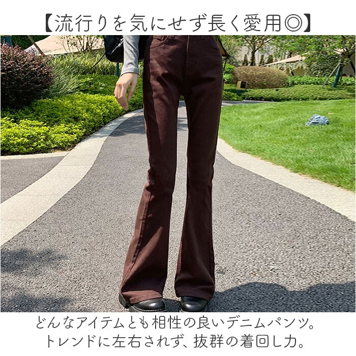 | 商品説明 | 【カジュアルコーデの定番アイテム】ヘビロテ間違いなし☆オールシーズンおしゃれに着こなせる「デニムパンツ」が新登場。【流行りを気にせず長く愛用◎】どんなアイテムとも相性の良いデニムパンツ。トレンドに左右されず、抜群の着回し力。【自分サイズに心地よくフィット】程よいストレッチ性で、優しく馴染む☆ファスナー&ボタンで簡単に着脱。【ヒップラインも上げて足元すらり】お腹をキュッと見せて、ヒップも上がるハイウエスト。クロップド丈のトップスとも相性抜群◎【コケティッシュなブーツカット仕様】裾が広がった、メリハリのあるシルエット。足元すらり、スタイルアップ♪【小物が入る便利なポケット】前後左右にポケット&ミニポケットを配置。スマホや薄手のハンカチなどをIN。【お気に入りを選べるカラー】トップスを選ばない、スタンダードカラーをラインナップ。お友達とリンクコーデもおすすめ! |