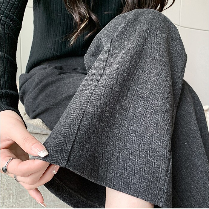 レディース ハイウエスト ストレートパンツ【グレー(9分丈タイプ)】【Lサイズ】