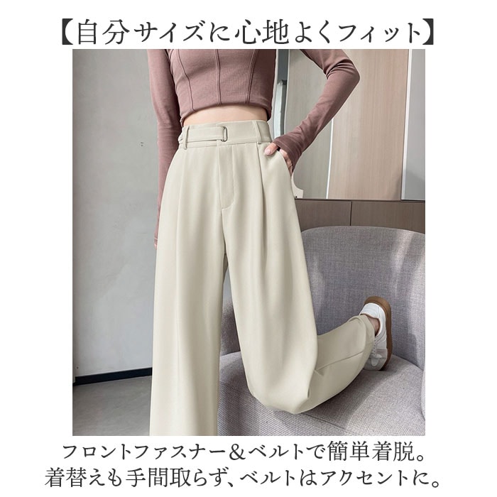| 商品説明 | 【足をキレイ魅せ♪デイリーに活躍】おしゃれに履きこなせて、着回し力も抜群☆ハイウエスト仕様の「レディースパンツ」。【足元すらり、自然なスタイルアップ】お腹をキュッと見せてヒップも上がるハイウエスト。トップスインやクロップド丈とも相性抜群。【自分サイズに心地よくフィット】フロントファスナー&ベルトで簡単着脱。着替えも手間取らず、ベルトはアクセントに。【締め付けのないワイドストレート】すとんと落ちてボディラインを拾いにくい!ダボッとしすぎず、気になる部分はすっきりカバー。【小物が入る便利なポケット】嬉しいポケット付き。スマホや薄手のハンカチなどをIN。【オン・オフ問わず使えて万能】コーデに取り入れやすい、シンプルなデザインと落ち着いたカラー。1本あればヘビロテ確定♪ |