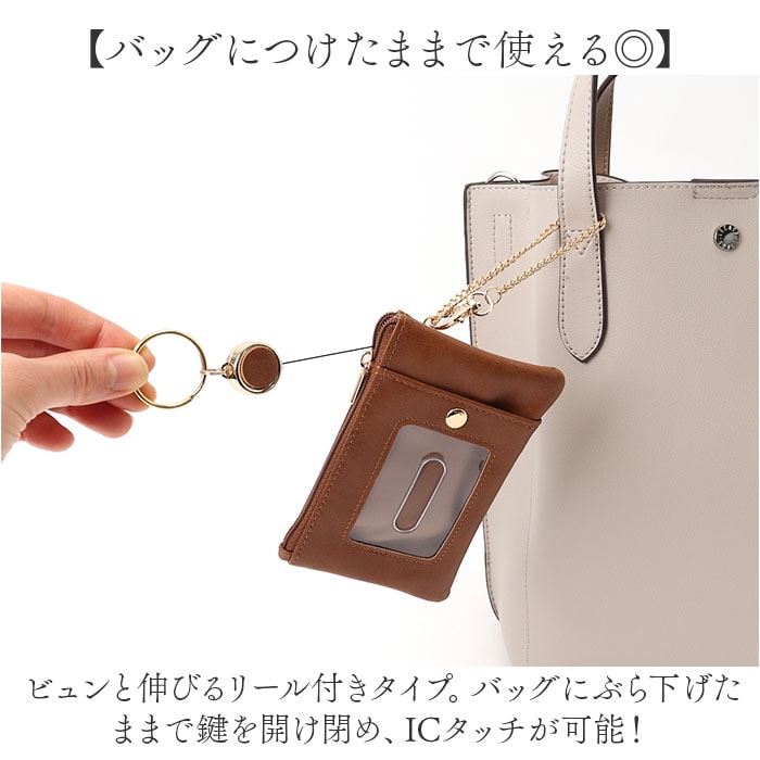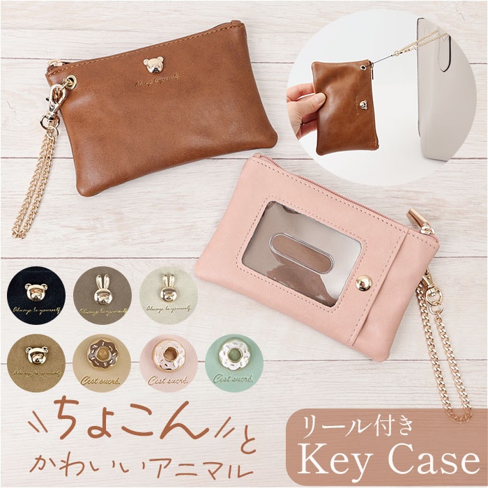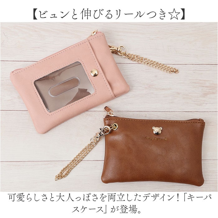 | 商品説明 | 【ビュンと伸びるリールつき☆】可愛らしさと大人っぽさを両立したデザイン!「キーパスケース」が登場。【鍵とICカードなどをひとまとめに】キーリングつきのパスケース。カードや小銭などが入るサイズで、必要な小物をまとめられる!【バッグにつけたままで使える◎】ビュンと伸びるリール付きタイプ。バッグにぶら下げたままで鍵を開け閉め、ICタッチが可能!【クリア窓つきなのがポイント】裏面にクリア窓つきポケットを搭載。スナップボタンで留まるからICカードを入れても安心。【ちょこんとかわいいアニマル】パッと目をひくアニマルがアクセント。ゴールド仕様が上品で、大人も使える可愛さ。【シーンを選ばずに毎日持てる】レザー調の落ち着きのある素材感。お仕事もお休みも通学もOKのシンプルさが魅力。【ギフトにもオススメのアイテム】年齢を問わずに使えるおしゃれなアイテムなので、ギフトにもGOOD☆ |