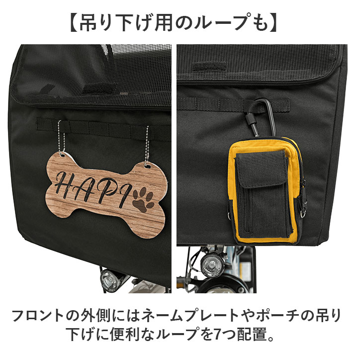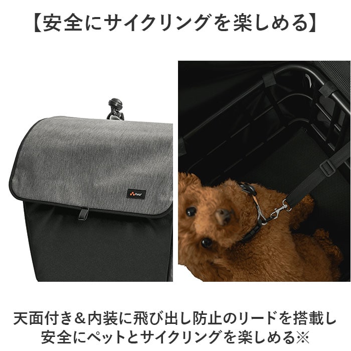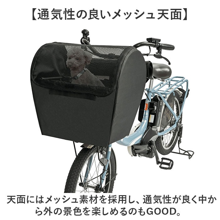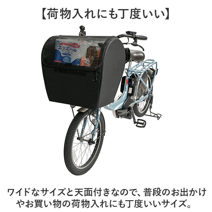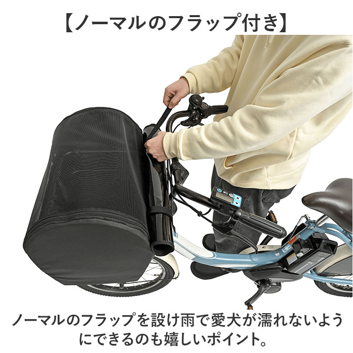 | 商品説明 | 【愛犬と一緒にサイクリング】晴れの日はもちろん、雨の日もOK!ペットとサイクリングを楽しめるバスケットカバー。※ワイド型前カゴ専用【安全にサイクリングを楽しめる】天面付き&内装に飛び出し防止のリードを搭載し安全にペットとサイクリングを楽しめる※乗車可能ペット:超小型犬~小型犬【簡単設置】カゴに被せて面ファスナーテープのベルトで留めるだけ♪工具不要で手軽に設置可能◎【通気性の良いメッシュ天面】天面にはメッシュ素材を採用し、通気性が良く中から外の景色を楽しめるのもGOOD。【雨のちょっとしたお出かけにも】雨の日の通院など、ちょっとしたお出かけにも対応できる撥水加工済み。※完全防水ではございません。【ノーマルのフラップ付き】ノーマルのフラップを設け雨で愛犬が濡れないようにできるのも嬉しいポイント。【ペットが快適に過ごせるマット】カゴの中に敷くマットは厚手のクッションマットで、長時間入っていても快適に過ごせる◎【便利なフロントポケット】フロントの内側にはペットのケア用品やおやつを入れるのにちょうどいいサイズのポケット【吊り下げ用のループも】フロントの外側にはネームプレートやポーチの吊り下げに便利なループを7つ配置。【様々な車種に対応】後付けタイプなので様々な車種のワイド型のカゴに対応。※対応カゴサイズ:横45.5cm×奥行き35cm×高さ26cmまで対応(幅40.5cm以下の方はレギュラータイプをご購入ください。)【荷物入れにも丁度いい】ワイドなサイズと天面付きなので、普段のお出かけやお買い物の荷物入れにも丁度いいサイズ。 |