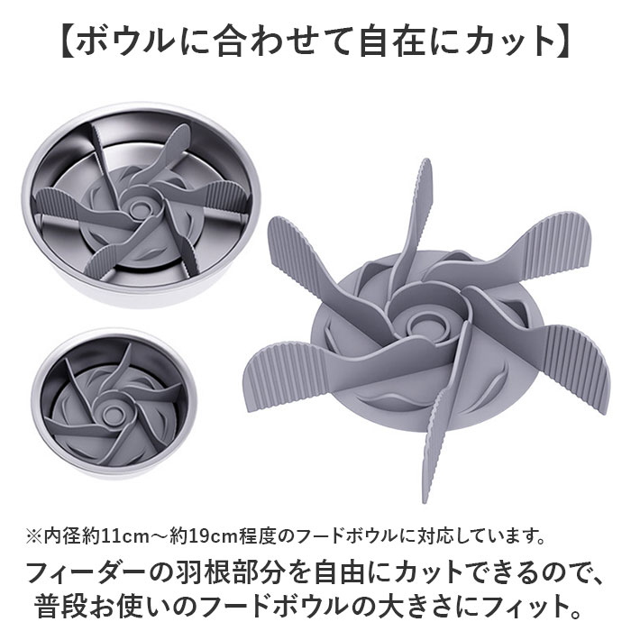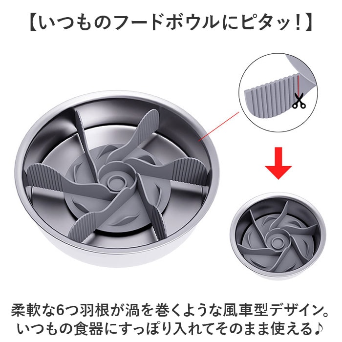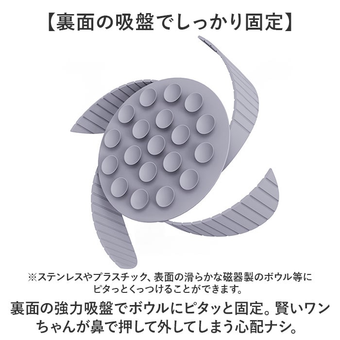 | 商品説明 | 【大切な愛犬の早食い防止に!】大切なペットの健康とスローフードのために。「ペット用早食い防止 スローフィーダー」【いつものフードボウルにピタッ!】柔軟な6つ羽根が渦を巻くような風車型デザイン。いつもの食器にすっぽり入れてそのまま使える♪【ゆったりお食事タイムに導く】食器の中に渦巻き状の凹凸ができ、敢えて食べにくい形にすることで自然にスローフードを実現。【裏面の吸盤でしっかり固定】裏面の強力吸盤でボウルにピタッと固定。賢いワンちゃんが鼻で押して外してしまう心配ナシ。※ステンレスやプラスチック、表面の滑らかな磁器製のボウル等にピタっとくっつけることができます。【ペットを傷つけない安全素材】舐めたりかじったりしてもペットの身体を傷つける心配のない、柔らかくて安全なシリコン素材。【ボウルに合わせて自在にカット】フィーダーの羽根部分を自由にカットできるので、普段お使いのフードボウルの大きさにフィット。※内径約11cm~約19cm程度のフードボウルに対応しています。【汚れがサッと落ちて、お手入れ簡単】食器用洗剤を含ませたスポンジで洗浄することで汚れを簡単OFF!繰り返し使えてとってもECO♪【イヌ・ネコ共用タイプ】早食いで消化不良を起こしやすい愛犬にはもちろん、食べ過ぎて肥満の気になるネコちゃんに最適。 |