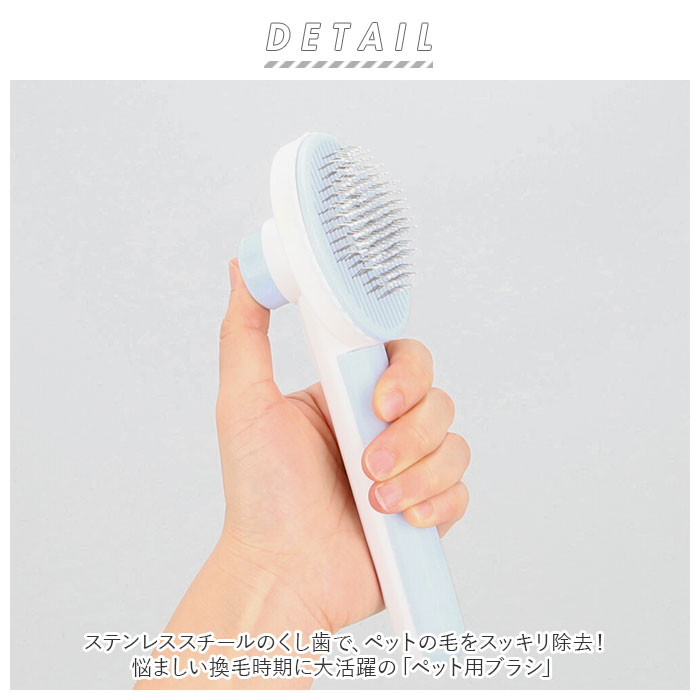 | 商品説明 | ステンレススチールのくし歯で、ペットの毛をスッキリ除去!悩ましい換毛時期に大活躍の「ペット用ブラシ」ヘッド部背面のボタンを押すと台座が浮き上がり、くし歯に付いたペットの毛をワンプッシュ除去!あとは毛玉をポンッとくずかごに捨てるだけ!くし歯の中央が適度に傾斜しているため、長毛種のネコちゃんの絡まった体毛もスムーズにキャッチ。くし歯の先には丸く加工された先玉付き。ペットの肌を傷つけることなく、やさしく手軽にブラッシング。抜け毛を取り除くだけではなく、ワンちゃんやネコちゃんの毛づやをよくするためのマッサージ用にも最適♪日頃のブラッシングケアでフロアに落ちる抜け毛が軽減し、お掃除がとっても楽ちん。ペットも飼い主さんも毎日笑顔に♪毎日のこまめなブラッシングで、大切なペットとスキンシップを図りたい飼い主さんにオススメ。 |