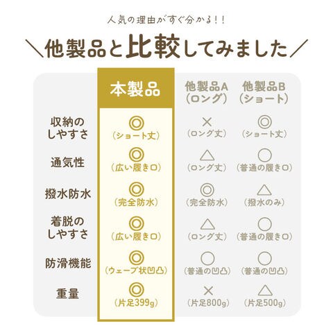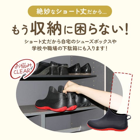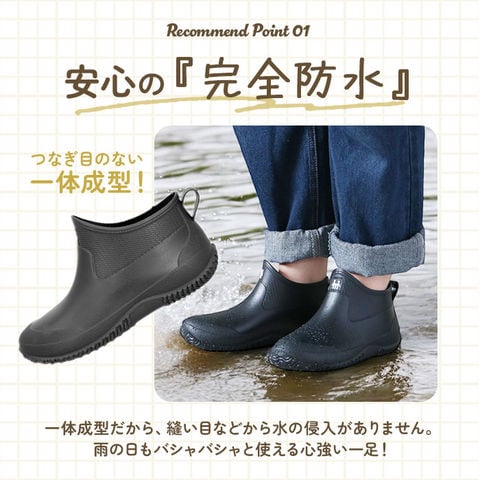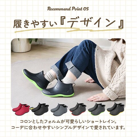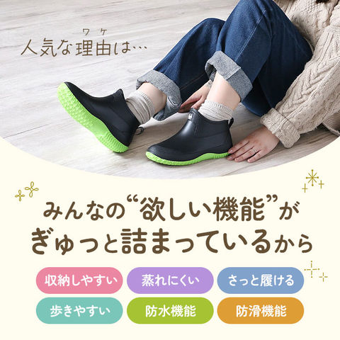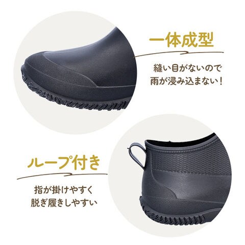| 商品説明 | 雨の日のお出かけやアウトドアシーンで活躍する、ショート丈のレインブーツが発売。柔らかな感触で水や汚れに強いPVC素材を採用。靴底は凹凸のある形状で、濡れた場所でも滑りにくい。スポンと履けるショート丈タイプ。履き口にはループ付き。ユニセックスで履けるシンプルなデザインと、豊富なカラーバリエーション♪ |