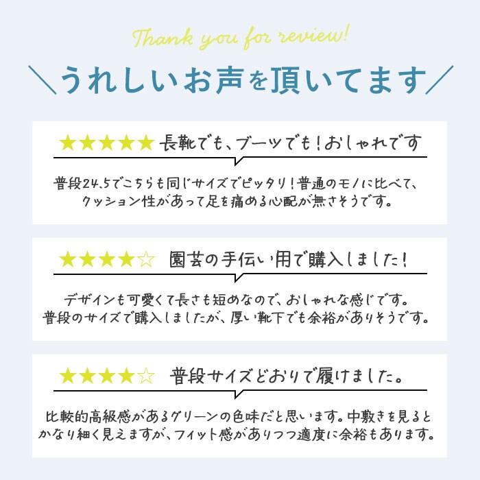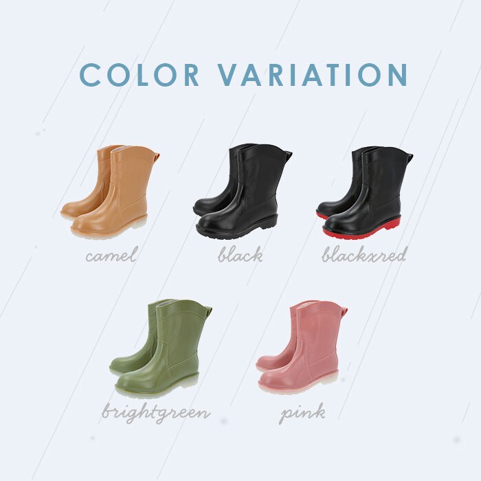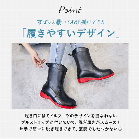 | 商品説明 | 雨の日にもオシャレができる♪ミドル丈のレインシューズが登場。ガーデニングや農作業・アウトドアでも活躍できるので、晴雨問わず使用ができる◎アウトソールはアッパー素材を使用!凹凸のあるソールなので、滑りにくい。背面にはプルストラップが付属しているので、片手でも簡単に脱ぎ履きが可能。22.5cm~25cmまでの6サイズ展開、カラーバリエーションも豊富なのでコーデに合わせていくつも持っていたいアイテム♪ |