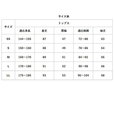 | サイズ | [ユニセックス] ・SSサイズ ・Sサイズ ・Mサイズ ・Lサイズ ・LLサイズ ※サイズについて詳細は、商品画像の中にあるサイズ表をご覧くださいませ。 |