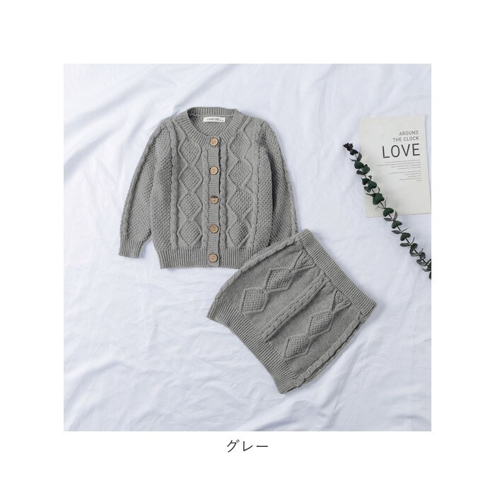 ニットセット 女の子 スカートタイプ ks09【グレー】【90cm(18-24m向け)】