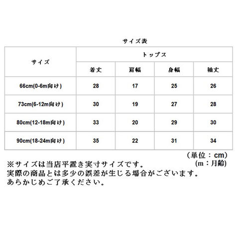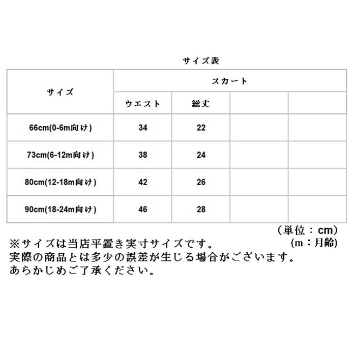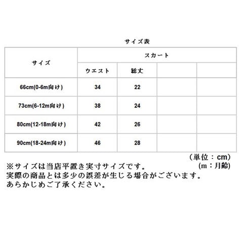 | 重量 | 【トップス】約128g 【スカート】約99g ※73cm(6-12m向け)の商品の重量です。 |