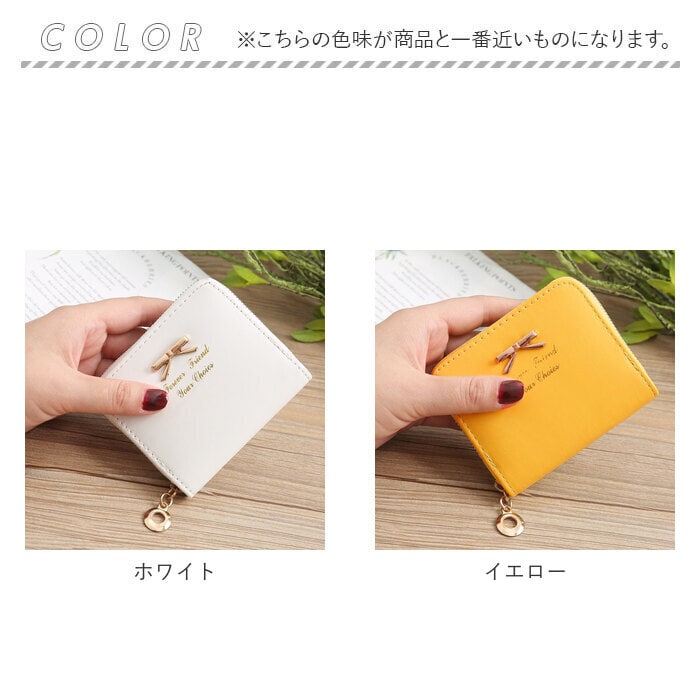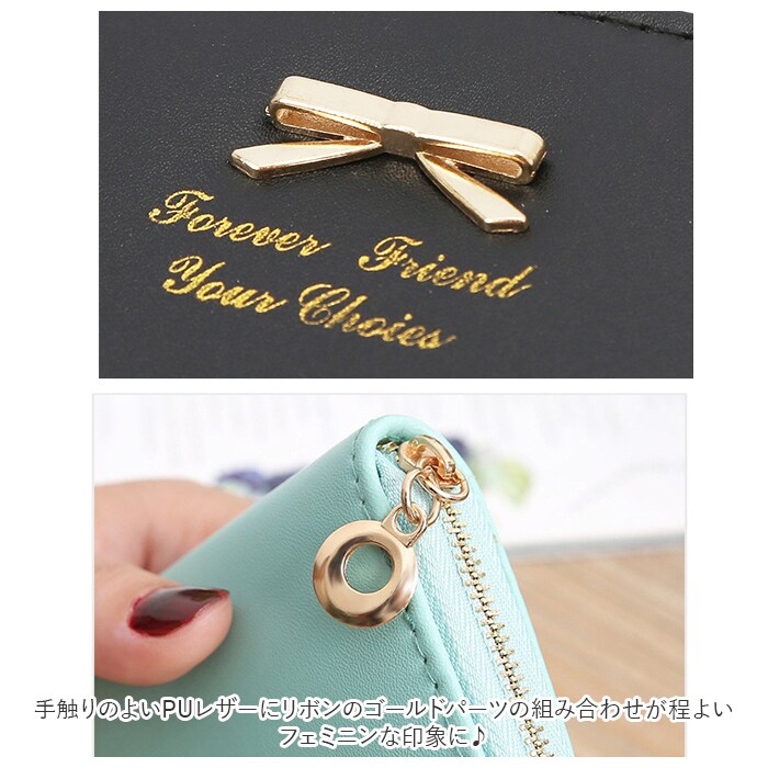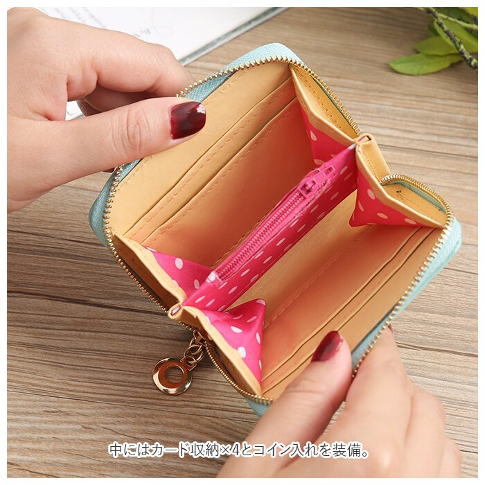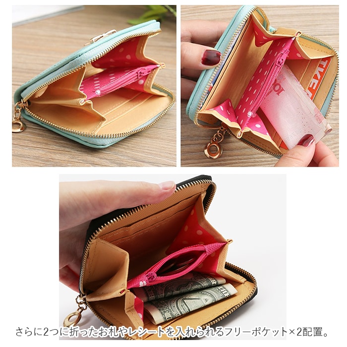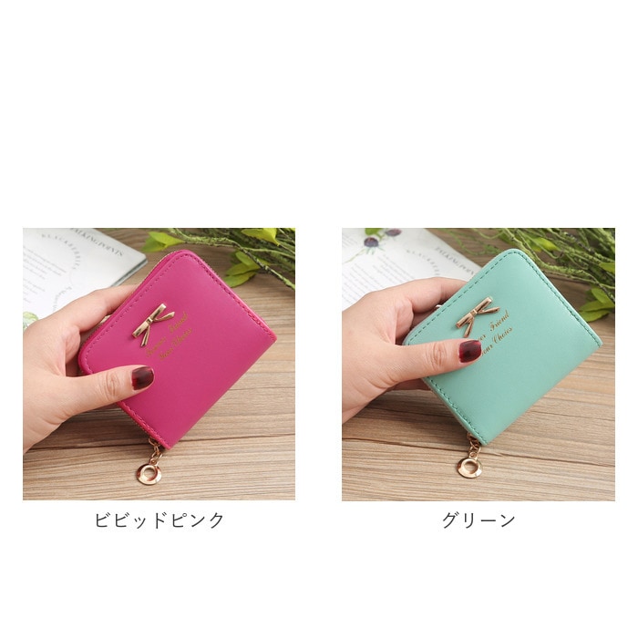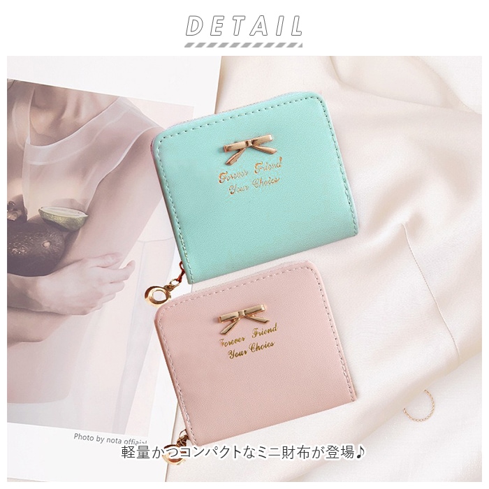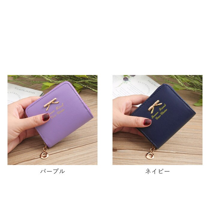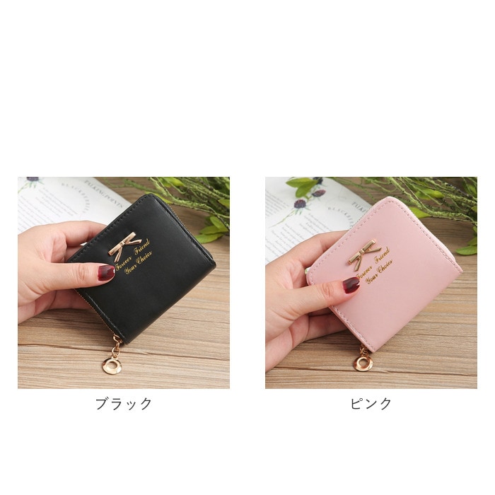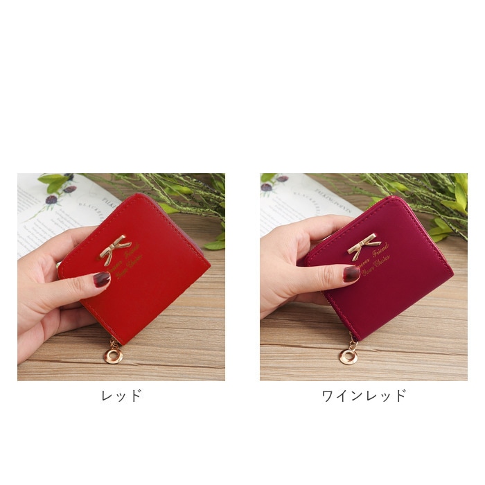 | 商品説明 | 軽量かつコンパクトなミニ財布が登場♪中にはカード収納×4とコイン入れを装備。さらに2つに折ったお札やレシートを入れられるフリーポケット×2配置。手触りのよいPUレザーにリボンのゴールドパーツの組み合わせが程よいフェミニンな印象に♪ショルダーバッグやポシェットなど小さいカバンに入れてもかさばらないサイズ感♪幅広い年代で使えるシンプルなデザインなのも嬉しい。 |