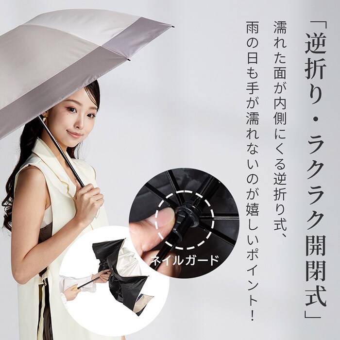| 商品説明 | 【逆さ傘の新しい正解】濡れずにたためる逆さ構造「sakasa glare classic シルキーラックス」【逆さ傘で収納もスマート】傘を逆さにたたむ設計で濡れた面が内側に収まり、雨の日の収納ストレスをゼロに◎【骨を折らずラクラク開ける】骨をポキポキ折る手間なく開閉できる手開き仕様で、急いでいる時もスマートに使える。【ラミネート加工の高耐久】生地裏面のラミネートフィルムがPUコーティングを超える耐久性を実現!【遮光・UVを100%カット】UVカット率・遮光率100%でUPF50+の完全遮光。強烈な日差しにも安心〇【約18.6℃の遮熱パワー】可視光線・赤外線をブロックし温度上昇を抑える遮熱効果で、真夏でも傘の下が快適に。【シルキーな上質素材】滑らかなシルキーラックス生地が光をやわらかく受け、傘を広げるたびに心地よさを実感♪【上品なバンブーハンドル】焼き竹加工を施した天然バンブーハンドルが持ち手にぬくもりを◎【フック付きケースがおしゃれ】フック付きケースでバッグのハンドルに装着でき、シルキーな傘をきれいに持ち運び! |