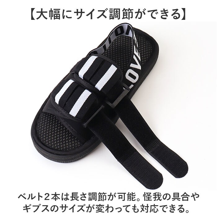 | 商品説明 | 【スポサンみたいなおしゃれさ♪】怪我をしてしまった足やリハビリ用に。「ギプスシューズ 介護用サンダル 左右兼用」が登場。【これ1つで左右どちらの足に使える】ゆったりした作りで、左右どちらにもフィット。性別年齢を問わずに使えるサイズをご用意。【怪我をしてしまった足に】ギブスをした足、包帯で固定した足など、リハビリで動かしたい時にぴったりなアイテム。【おしゃれなサンダルみたい☆】トレンドのスポーツサンダルのようなデザイン性がGOOD!いつでもおしゃれを楽しみたい方へ♪【グーンと伸びるかかとベルト】かかと部分は良く伸びるので、着脱しやすく動きやすい!締め付け感が少ないのがポイント。【大幅にサイズ調節ができる】ベルト2本は長さ調節が可能。怪我の具合やギブスのサイズが変わっても対応できる。【滑りにくいソールで安心】ソールには滑り止め加工を施し、不安定なリハビリ中や松葉杖生活の歩行の安全面を考慮。【ムレにくいメッシュインソール】足裏に触れる部分はクッションとメッシュ素材で、柔らかく快適に。長時間の着用も◎ |