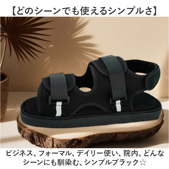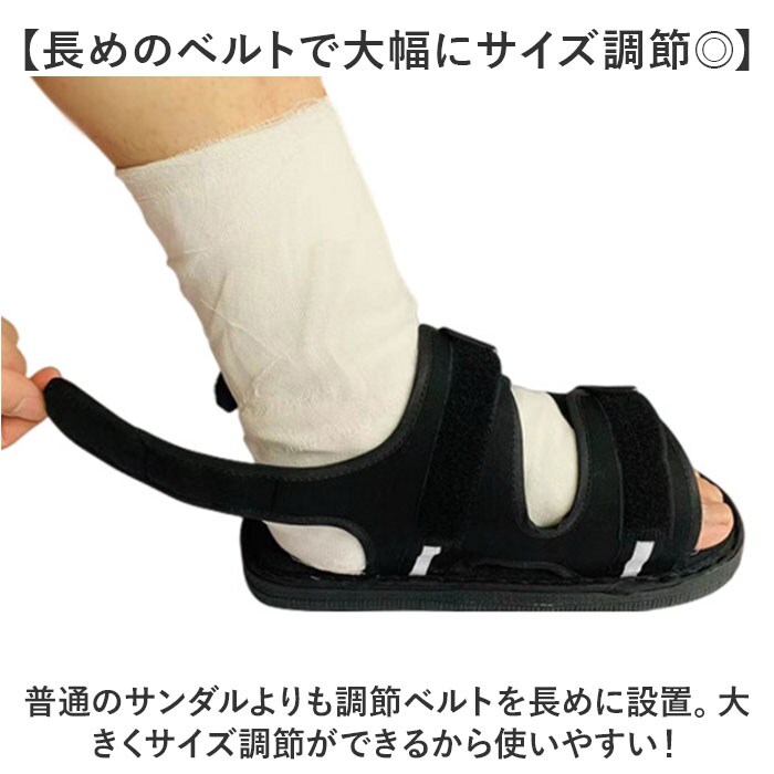 | 商品説明 | 【両足どちらの足にも対応できる☆!】ギブス、リハビリなど固定したい足にぴったりな「サンダル 左右兼用」が登場。【これ1つで左右どちらの足に使える】ゆったりした作りで、左右どちらにもフィット。片足タイプなのに、両足使えるのがポイント。【ギブス、包帯、リハビリなどで活躍】ギブスをした足、包帯で固定した足、リハビリで動かしたい時にぴったりなアイテム。【しっかり固定する面ファスナー仕様】面ファスナーを3箇所に。足をしっかり固定してくれるから、足元が安定し歩行をサポート。【長めのベルトで大幅にサイズ調節◎】普通のサンダルよりも調節ベルトを長めに設置。大きくサイズ調節ができるから使いやすい!【滑りにくいソールで安心】ソールには滑りと止め加工を施し、不安定なリハビリ中や松葉杖生活の歩行の安全面を考慮。【どのシーンでも使えるシンプルさ】ビジネス、フォーマル、デイリー使い、院内、どんなシーンにも馴染む、シンプルブラック☆ |