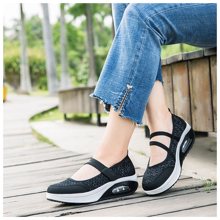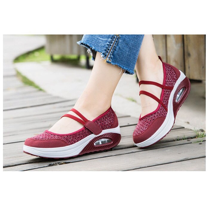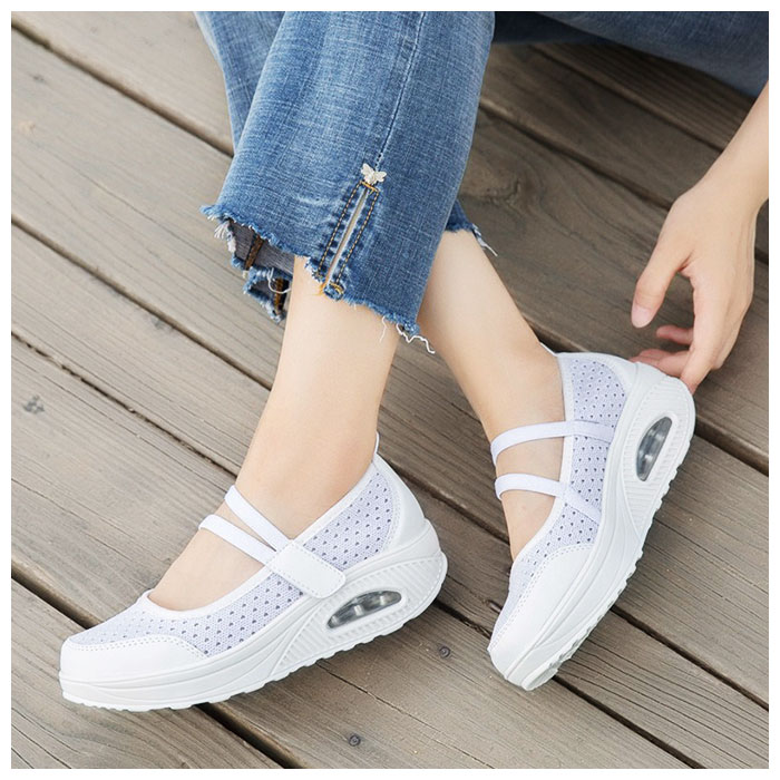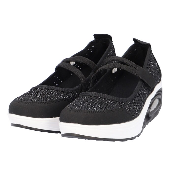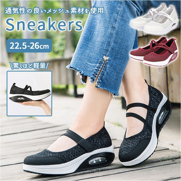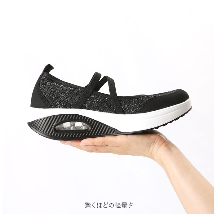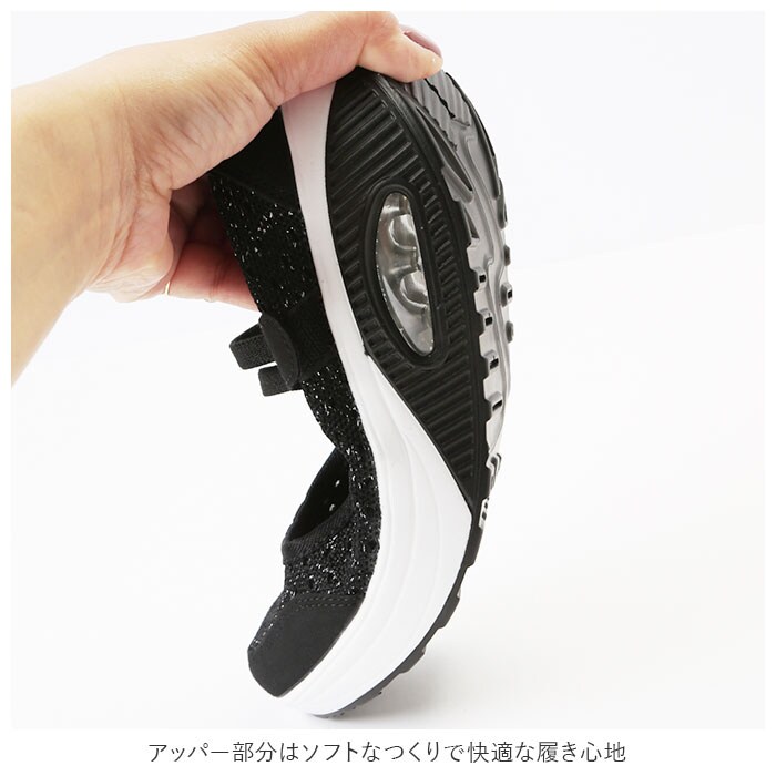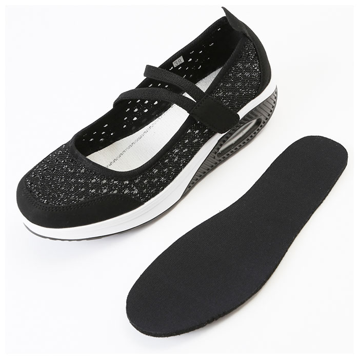 | 商品説明 | どんなスタイルにも合わせやすいシンプルデザインの厚底スニーカー。全体に通気性の良いメッシュ素材を使用した蒸れにくい設計。アッパー部分はソフトなつくりで快適な履き心地。着脱は面ファスナーで留めるだけの簡単仕様。取り外しのできる中敷きはクッション性があり、足裏の衝撃をやさしく吸収。アウトソールは摩耗性に優れたEVA素材を採用。驚くほどの軽量さに加え、ソール部分のエアークッションが長く歩いても疲れづらい歩行をサポート。 |