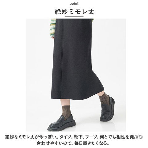 | 商品説明 | ONもOFFもこれひとつでOK☆シンプルで毎日履ける、スカートが登場。【ONもOFFもOK】合わせるお洋服次第で、カジュアルにもキレイめにも対応できるタイトスカート。お休みもお仕事も通学もOK、幅広いシーンにマッチ。【すっきりシルエット】タイトなすっきりシルエットが魅力。女性らしいラインをキレイに見せてくれる。センタープレスで上品さをプラス。【らくちんウエスト】ウエスト部分は幅広のゴムを使用。らくちんな着心地で、1日中履いてもストレスフリー☆キッチリ見えてもらくちんなのが嬉しいポイント。【抜け感スリット】バッグ部分には深めのスリットを配置。抜け感が出て重い印象にならない。足さばきもしやすく動きやすい◎【絶妙ミモレ丈】絶妙なミモレ丈が今っぽい。タイツ、靴下、ブーツ、何とでも相性を発揮◎合わせやすいので、毎日履きたくなる。 |