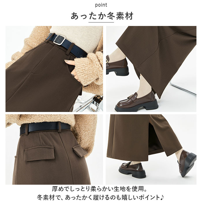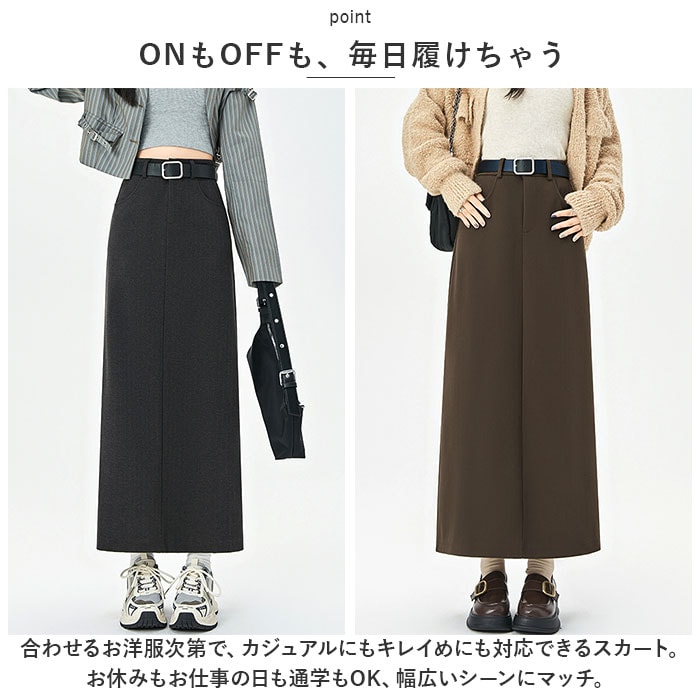 | 商品説明 | シンプルながらもちゃんとおしゃれ♪着回し力バツグンのスカートが登場。【着回し力バツグン♪】シンプルなのに、何と合わせても今っぽくおしゃれにキマる、着回し力バツグンのアイテム。ひとつは欲しい、ベーシックなスカート。【ONもOFFも、毎日履けちゃう】合わせるお洋服次第で、カジュアルにもキレイめにも対応できるスカート。お休みもお仕事の日も通学もOK、幅広いシーンにマッチ。【すっきりシルエット】タイトめなすっきりシルエットが魅力。女性らしいラインをキレイに見せてくれる。スリット入りで歩きやすく、ロング丈でも抜け感アリ☆【センタープレス】前後にセンタープレスをON。縦ラインが強調されるから、スラっとスタイルアップ効果◎上品さがUPし、高見え&きちんと見えもしてくれる!【あったか冬素材】厚めでしっとり柔らかい生地を使用。冬素材で、あったかく履けるのも嬉しいポイント♪【こっくりカラー】深みのあるこっくりカラーのバリエーション。大人の着こなしにぴったりな、肌なじみの良い色合い。お好みをチョイス☆ |