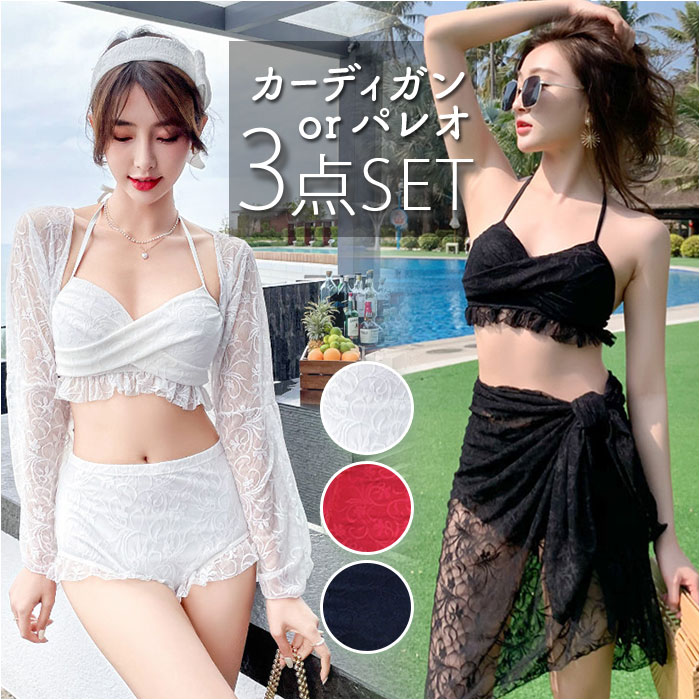 | 商品説明 | レース風デザインが大人可愛い水着3点セット♪【ビキニデザイン】ブラとショーツはシンプルなビキニスタイル。バストには適度な厚さのパッドが内蔵。さらにワイヤー入りなのでバストをしっかりホールド。バックはホックタイプではなく、リボンタイプなので自分サイズに心地よくフィット。【お腹周りカバー】ショーツはハイウエストタイプでお腹まわりをしっかりカバー。【ショールは選べる2タイプ】Aタイプはカーディガンタイプ。袖を通せば肩から落ちる心配もなし。もちろん腰巻にしてもOK☆Bタイプはパレオタイプ。腰に巻いたり肩にかけたりとアレンジ自在。巻き方次第で体型カバーでもできちゃう◎【シンプルカラー】シックなカラーバリエーション。大人女子はもちろん、ティーンエイジャーにもおすすめなアイテム。 |
