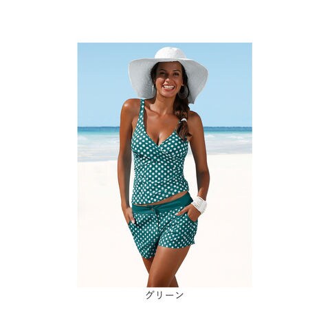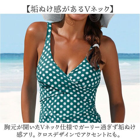 ポルカドット タンキニ 水着【グリーン】【Mサイズ】