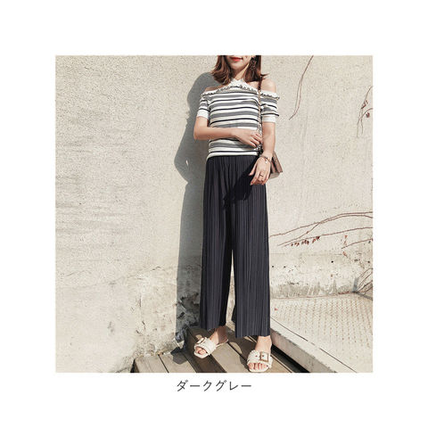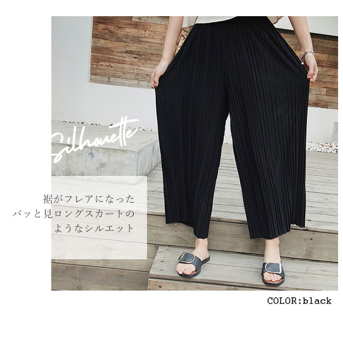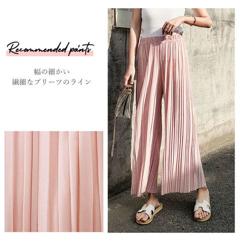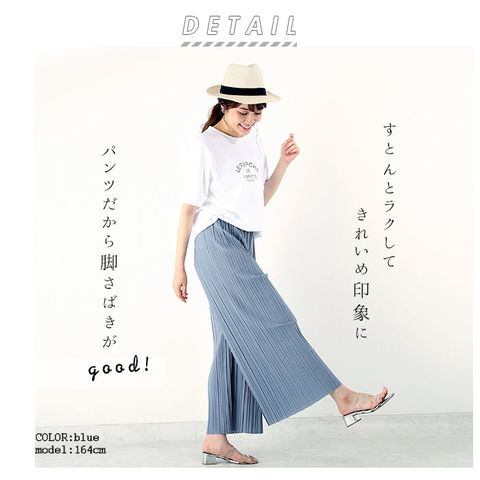 | 商品説明 | 歩くたびにサラサラと流れるような質感のプリーツがエレガント!ゆったり着こなせるキレイめマキシ丈ワイドパンツ。裾がフレアになったパッと見ロングスカートのようなシルエットで、動きやすいのに、大人っぽくてフェミニンな雰囲気に演出できる♪ハイウエストなデザインと、幅の細かい繊細なプリーツのラインですっきり足長に見せてくれる効果も♪腰回りや足のラインもゆったり包み込んでくれるので、体型カバー効果にも期待大!サラリと心地よい肌触りの生地で、ふんわり軽い履き心地。リラックスできるのにきちんと感もあるのが嬉しい!お仕事に、デートに、ママ友とのランチに!コーディネートの幅も広がる♪くるぶしが見え隠れする程よい丈感。サンダルやパンプスと合わせて、涼し気な足元のファッションも楽しめる。 |