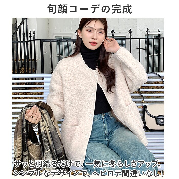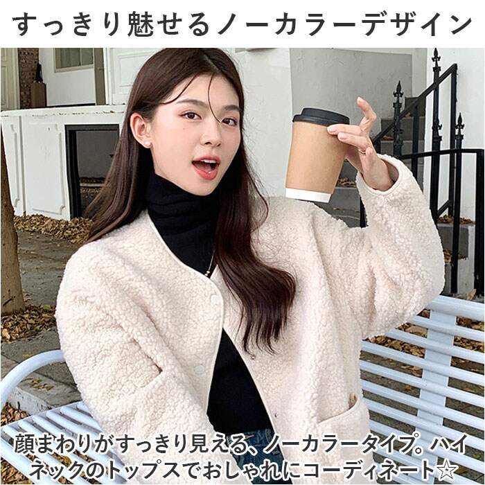 | 商品説明 | もこもこ素材が可愛い♪ 秋冬に大活躍のボアジャケットが登場。【カジュアルコーデにぴったり】デニムなどとの相性も抜群。大人のカジュアルコーデにマッチするボアジャケット。【ふんわりあったか】表面はふわふわのボア素材、裏面はしっとりとした生地感。寒い季節も優しく包み込んでくれるアイテム。【すっきり魅せるノーカラーデザイン】襟元は顔まわりがすっきり見える、ノーカラータイプ。スウェットやハイネックのトップスを仕込んでおしゃれにコーディネート☆【着脱がスムーズなフロントボタン】サッと着脱できるフロントスナップボタン式。ボタンは開けても閉めてもOK。【便利なポケット】左右に配置されたポケットには、スマホなどをIN。【旬顔コーデの完成】サッと羽織るだけで、一気に冬らしさアップ。シンプルなデザインで、ヘビロテ間違いなし! |
