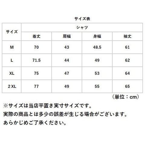 | サイズ | [メンズ] ・Мサイズ ・Lサイズ ・XLサイズ ・2XLサイズ ※サイズについて詳細は、商品画像の中にあるサイズ表をご覧くださいませ。 |