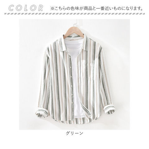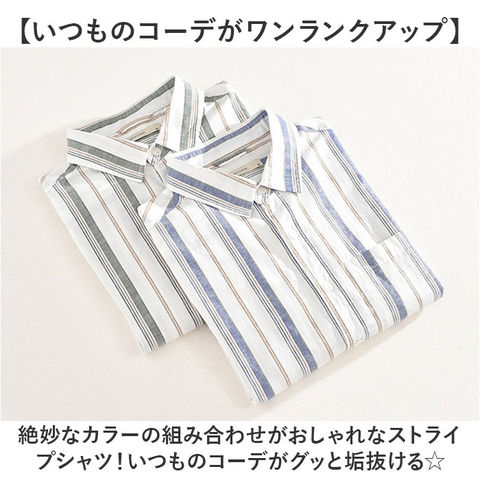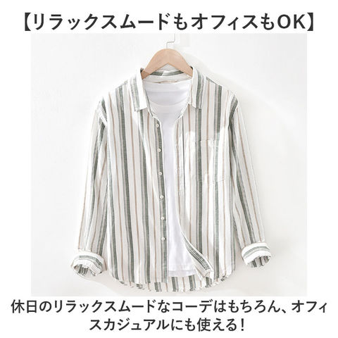 | 商品説明 | 【爽やかストライプでこなれコーデ☆】ロングシーズン使える、ひとつは欲しい愛されアイテム。メンズシャツが登場。【いつものコーデがワンランクアップ】絶妙なカラーの組み合わせがおしゃれなストライプシャツ!いつものコーデがグッと垢抜ける☆【爽やかさが魅力の愛されアイテム】老若男女問わず愛される、爽やかな印象のデザイン。麻を使ったナチュラルな雰囲気も魅力。【幅広い着こなしが楽しめる!】サラっと1枚着るだけでなく、Tシャツと合わせたり、インナーとして使いレイヤードするのも◎【ロングシーズン使える薄手の長袖】薄めの生地なので、季節の変わり目から冷房の冷えが気になる夏場、冬はニットと♪など年中OK。【リラックスムードもオフィスもOK】休日のリラックスムードなコーデはもちろん、オフィスカジュアルにも使える! |
