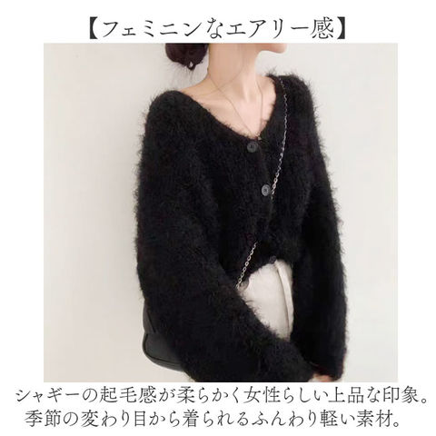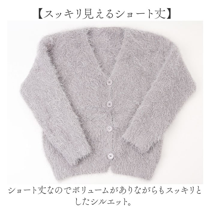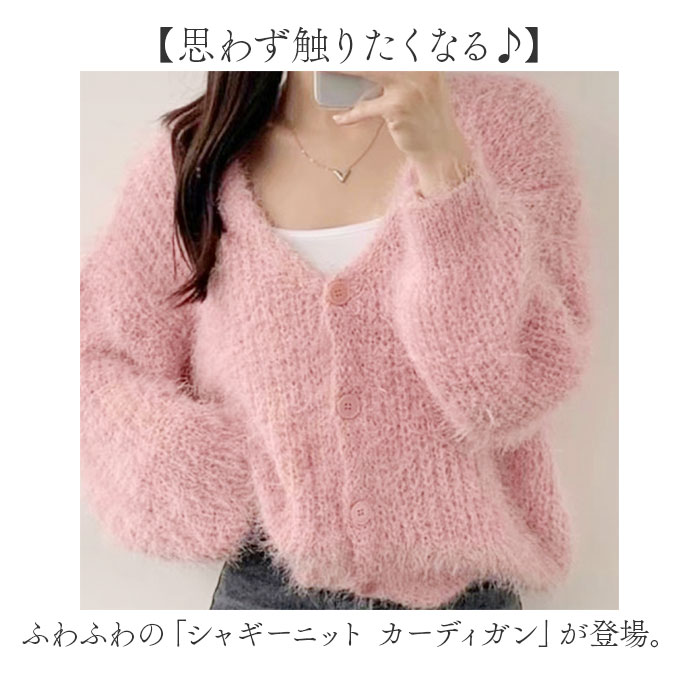 | 商品説明 | 【思わず触りたくなる♪】ふわふわの「シャギーニット カーディガン」が登場。【フェミニンなエアリー感】シャギーの起毛感が柔らかく女性らしい上品な印象。季節の変わり目から着られるふんわり軽い素材。【Vネックで大人っぽさ〇】胸元が程よく開いたシンプルなVネック。垢ぬけ感があり大人の雰囲気を演出。【スッキリ見えるショート丈】ショート丈なのでボリュームがありながらもスッキリとしたシルエット。【締め付け感のない着用感】ボリュームのある袖と、ゆったり感のあるデザインは気になる部分をさりげなくカバー。【お気に入りをチョイス】コーデや気分に合わせて選べる肌馴染みの良いカラーやベーシックカラーのラインナップ。 |