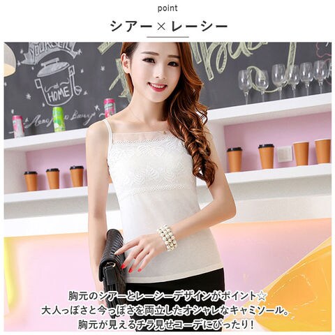 | 商品説明 | 胸元のシアーデザインが今っぽい☆キャミソールが登場。【シアー×レーシー】胸元のシアーとレーシーデザインがポイント☆大人っぽさと今っぽさを両立したオシャレなキャミソール。胸元が見えるチラ見せコーデにぴったり!【幅広く使える】重ね着でチラ見せするはもちろん、インナーや、部屋着としてリラックスタイムに着用するのもGOOD。幅広く使えるので一つあると大活躍!【伸縮性◎】伸びの良いモダール生地を使用。動きにフィットする伸縮性で、着心地の良さが魅力。【肩紐調整OK】肩紐にはアジャスターが付いているので、長さ調節が可能。体型に合わせてチェンジできるのも嬉しいポイント。【ベーシックカラー】インナーでも重ね着でも使いやすい、ベーシックカラーをご用意。毎日着るものだから、色違いでゲットするのもオススメ☆ |