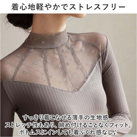 | 商品説明 | ヘルシーな肌見せが叶う♪フェミニンなレーストップスが新登場。【女性らしい上品な抜け感を演出】首元やデコルテ部分を、透け感のあるレース素材で仕上げたトップス。上品な雰囲気はそのままに、ちょこっと肌見せがコーデのポイントに。【着心地軽やかでストレスフリー】すっきり着こなせる薄手の生地感。ストレッチ性もあり、締め付けることなくフィット。ボトムスにインしても着ぶくれ感なし♪【すっきり見せるモックネックタイプ】首元にやや高さを出したネックデザイン。顔まわりもすっきりとした印象に。【アレンジできて着回し力ばっちり】・1枚で着るも良し、ニットなどと合わせておしゃれにレイヤードも♪お好みでアレンジOK。【お気に入りを選べるカラー】コーデを選ばず使いやすい、落ち着きのあるカラーをラインナップ。色違いで揃えて、コーデの幅を広げるのもおすすめ。 |