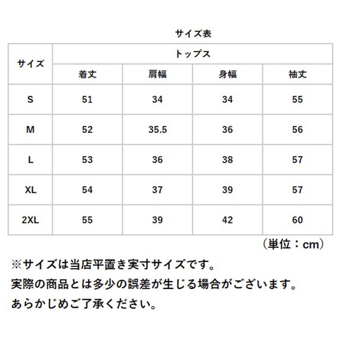| サイズ | [レディース] ・Sサイズ ・Mサイズ ・Lサイズ ・XLサイズ ・2XLサイズ ※サイズについて詳細は、商品画像の中にあるサイズ表をご覧くださいませ。 |