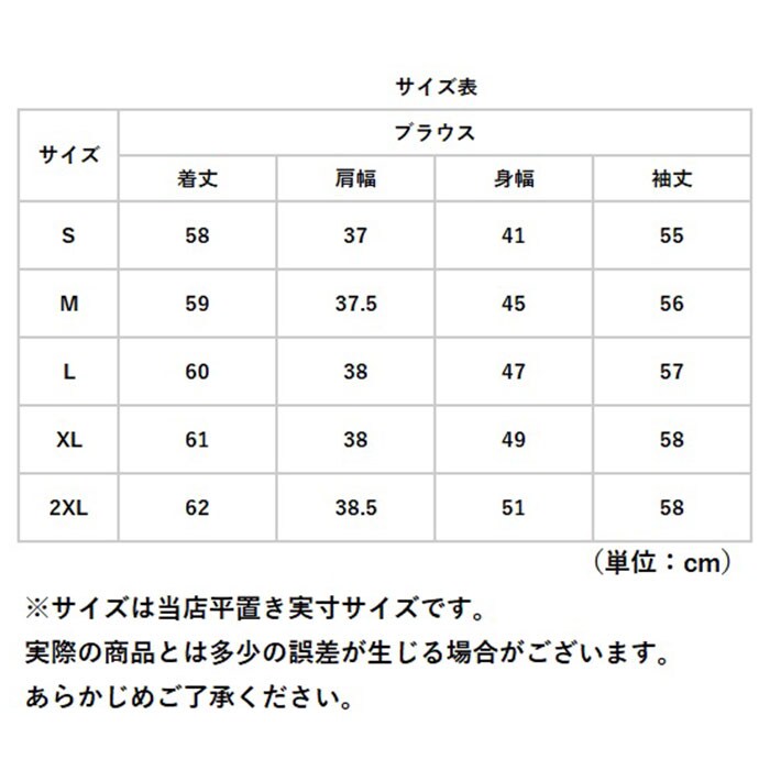 | サイズ | [レディース] ・Sサイズ ・Mサイズ ・Lサイズ ・XLサイズ ・2XLサイズ ※サイズについて詳細は、商品画像の中にあるサイズ表をご覧くださいませ。 |