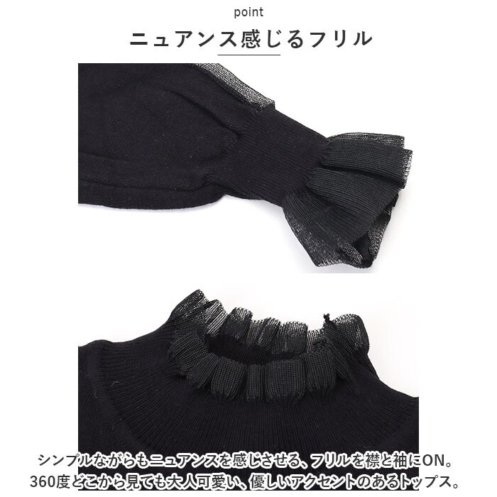 | 商品説明 | フリル×シースルーライン♪いつものコーデを瞬時に格上げ! ニットトップス が登場。【ニュアンス感じるフリル】シンプルながらもニュアンスを感じさせる、フリルを襟と袖にON。360度どこから見ても大人可愛い、優しいアクセントのあるトップス。【シースルーライン】トレンドのシースルーを両サイドに。重くなりがちなハイネックニットに今っぽい抜け感をプラスし、軽やかで華やかな印象に仕上げたアイテム。【大人クラシカル】大人の魅力を引き立てるクラシカルなハイネックタイプ。あたたかさはもちろん、コーデにプラスするだけで洗練された印象に仕上がる。【オンでもオフでも◎】ゆったりパンツと合わせてカジュアルに。タイトスカートと合わせてきれいめに。レイヤードにINしてお出かけにも。お休み~オフィスまでOKのバツグンの着回し力!【ストレスフリーな履き心地】ニットが苦手な方でもストレスなく着られる、柔らかな素材を使用。チクチクしにくいのも嬉しいポイント。【選べるカラー】落ち着きのある、大人カラーのバリエーション。どの色も合わせやすく可愛い♪お好みをチョイス! |
