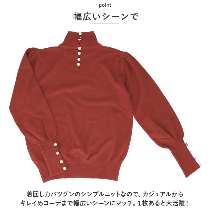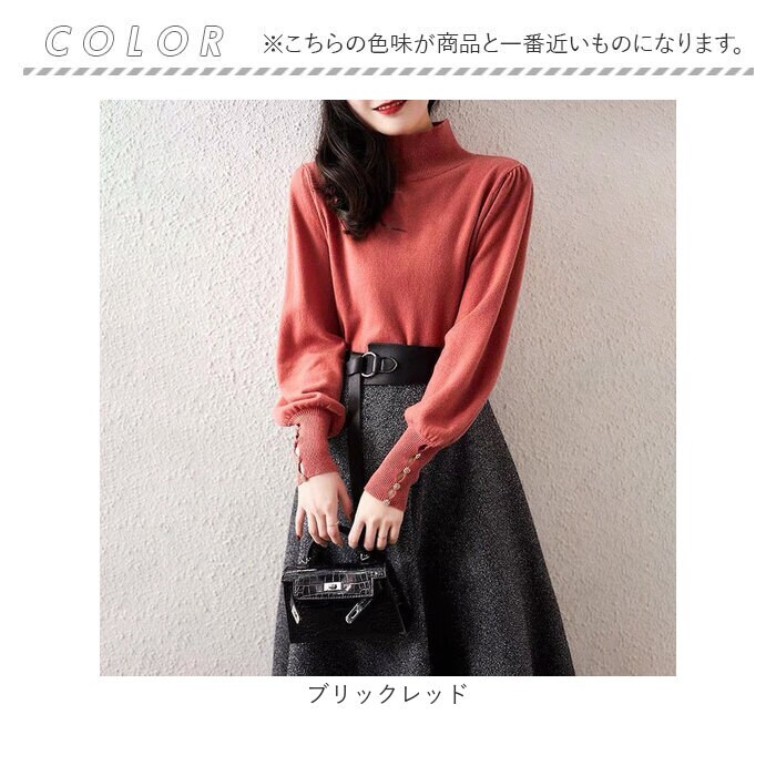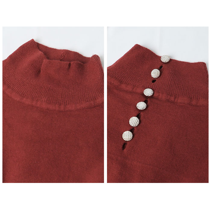 ハイネック ニットトップス ktops527【ブリックレッド】【Sサイズ】