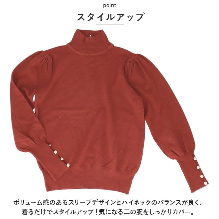 | 商品説明 | 袖コンシャス×キラッとボタンで上品コーデ♪ニットトップスが登場。【袖コンシャス】シンプルながらも豊かな表情を魅せてくれる、袖コンシャス。360度どこから見ても大人可愛い、トレンド感のあるニットトップス。【華やかなニット】パッと目を引く、キラッとボタンがアクセント。ゴールド使いが上品で、シンプルだけど華やかな印象に仕上げたアイテム。【スタイルアップ】ボリューム感のあるスリーブデザインとハイネックのバランスが良く、着るだけでスタイルアップ!気になる二の腕をしっかりカバー。【幅広いシーンで】着回し力バツグンのシンプルニットなので、カジュアルからキレイめコーデまで幅広いシーンにマッチ。1枚あると大活躍!【ストレスフリーな履き心地】ニットが苦手な方でもストレスなく着られる、しっとり柔らかな素材を使用。チクチクしにくいのも嬉しいポイント。 |