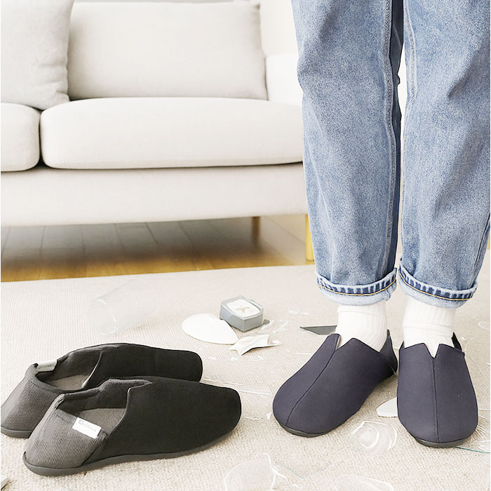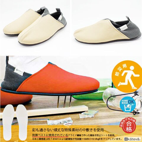 | 商品説明 | 【防災士考案】普段使いができる防災ルームシューズ。【特殊素材で足を守る】靴底に防弾ベストと同じアラミド繊維を使用しているから、釘を踏んでも安心※日本工業規格(JIS T 8107)による耐踏抜き性試験1100N(112.2kgf)をクリアしています。【2WAYで使い分け】かかとを踏んでスリッパに、非常時はかかとを戻してしっかり履けるから日常も防災時も〇【停電時も見つかる】蓄光タグ付きで暗闇でも光るから、停電や夜間の避難時に目印になる♪【清潔に保てる仕様】手洗い可能でインソールも取り外せるから、いつでも清潔にキープできて衛生的!【ユニセックス対応】男女問わず履けるから、家族みんなで備えられる。 |