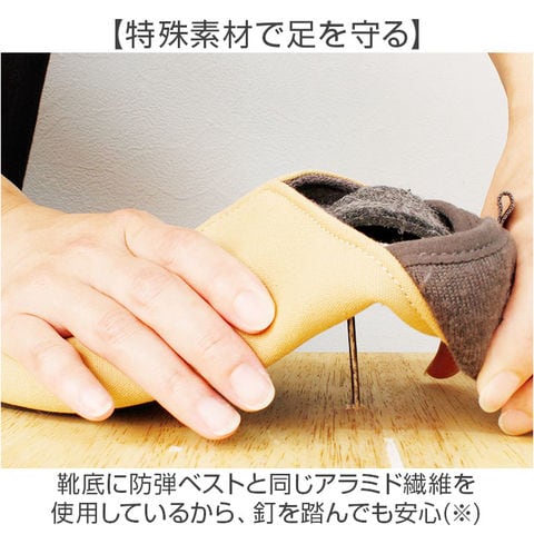 | 素材 | [甲皮]綿 [底材]合成底 [ライニング]ポリエステル [インソール]ポリエステル、ポリウレタン、アラミド繊維 |