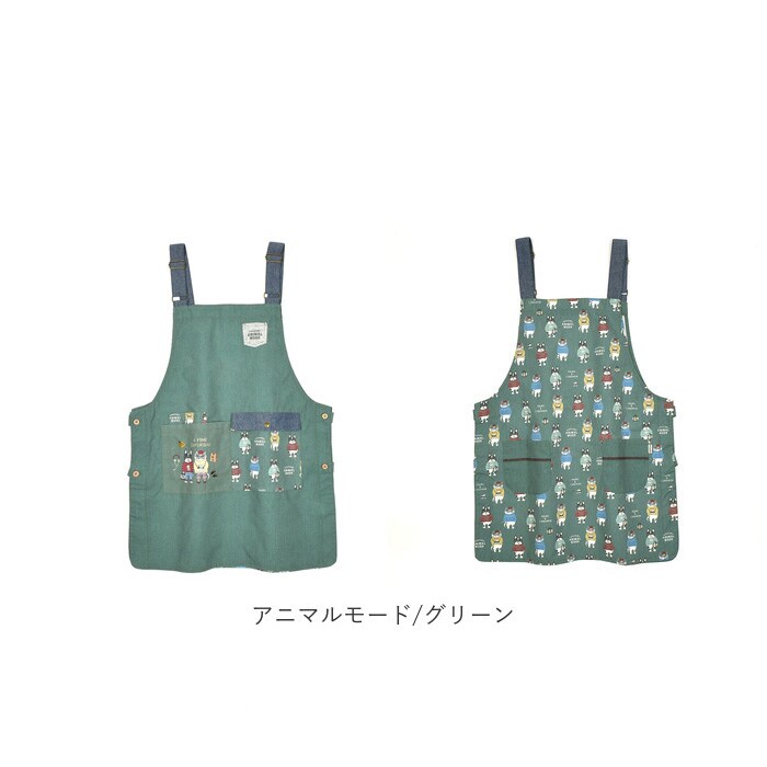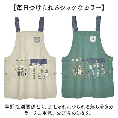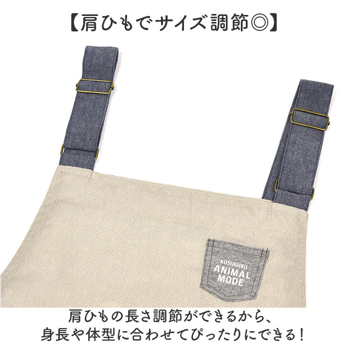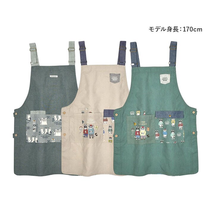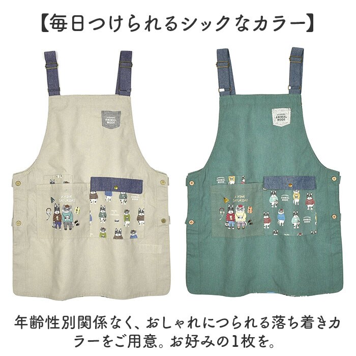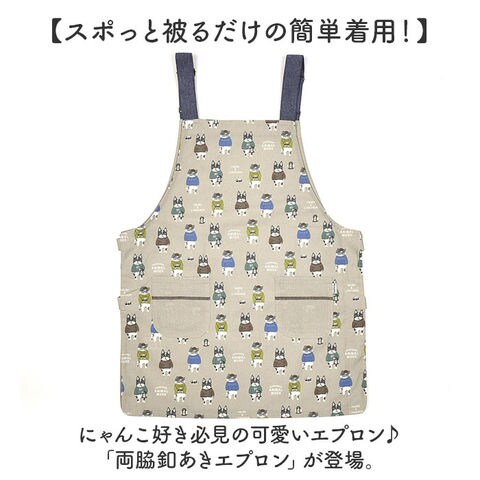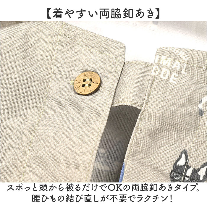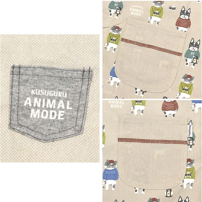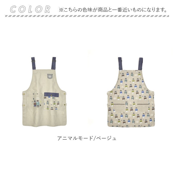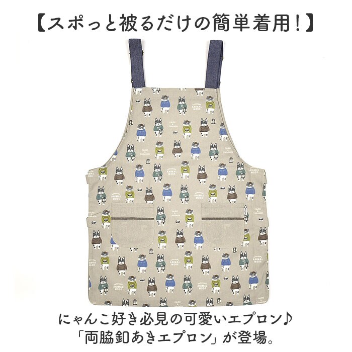 両脇釦あきエプロン【アニマルモード/ベージュ】